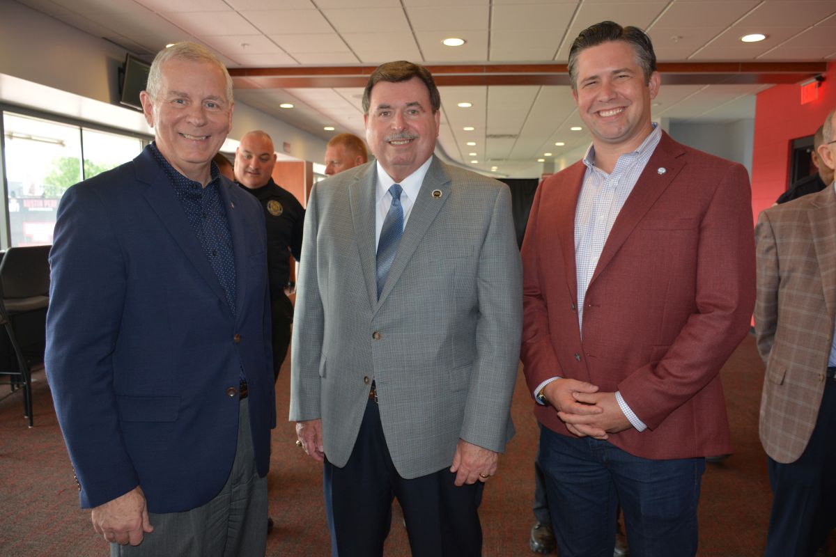 Clarksville Mayor Joe Pitts, Tennessee Highway Safety Office Director Buddy Lewis, and Montgomery County Mayor Wes Golden at the Hands Across the Border law enforcement safety event at Austin Peay on May 26, 2023. (Lee Erwin)
