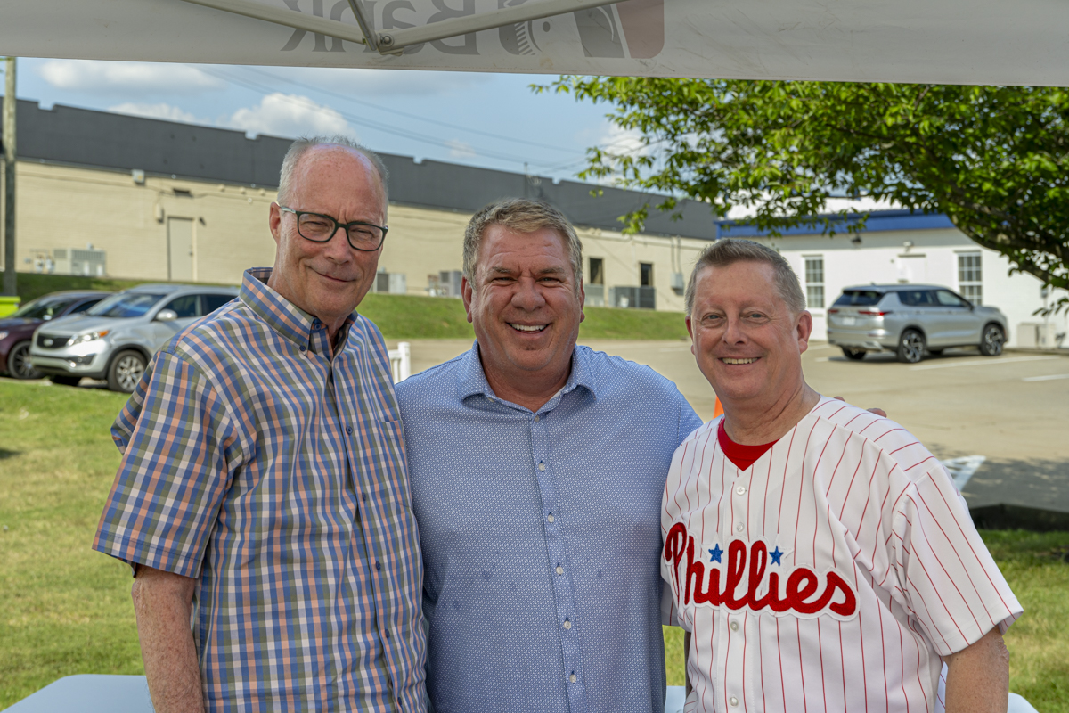 At the greeting tent with Bill Harpel, Bob Belvin, and Mike Rainey at the Clarksville Chamber of Commerce Business After Hours on June 20, 2024. (Jeff Danault)