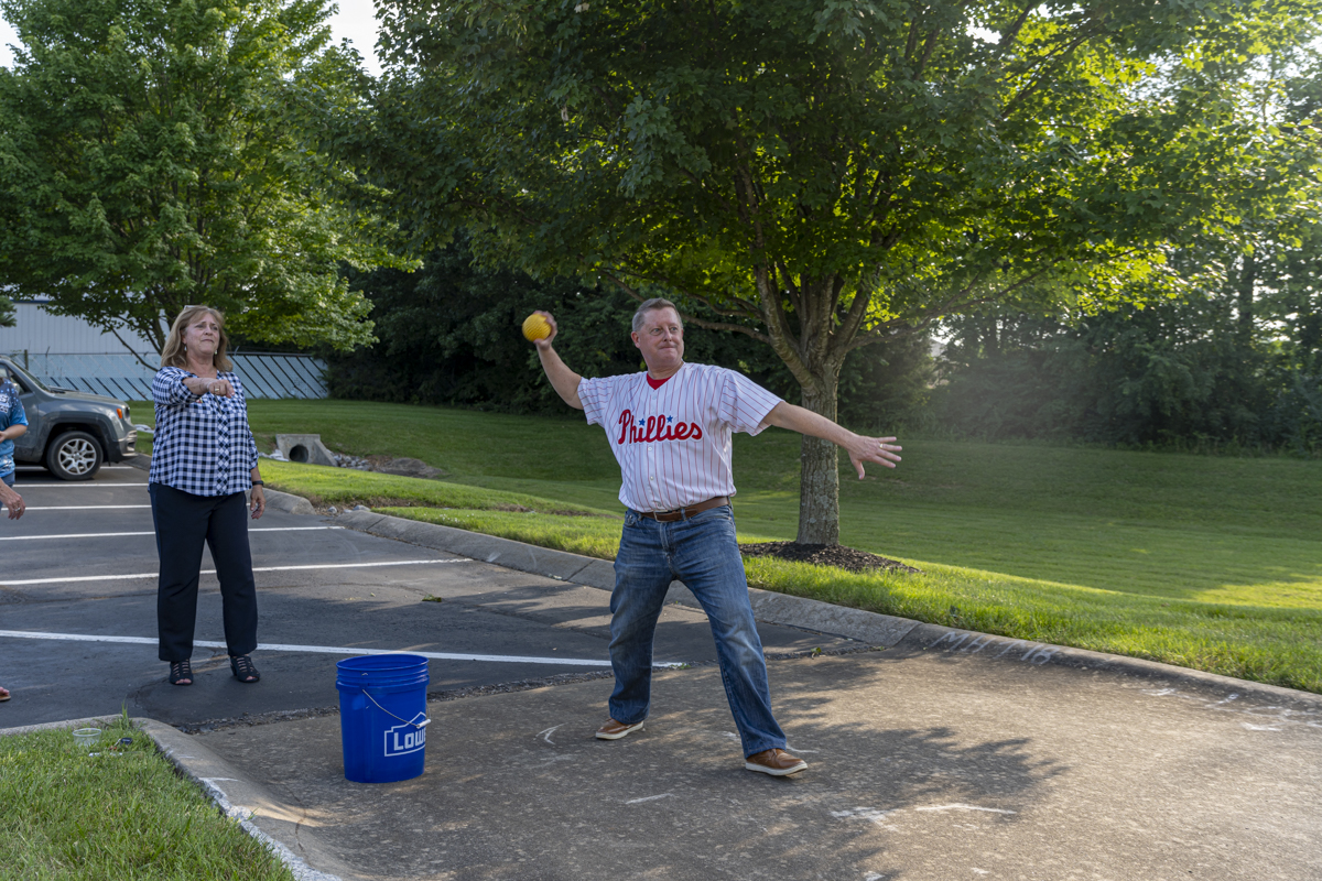 Mike Rainey testing his accuracy at the Clarksville Chamber of Commerce Business After Hours on June 20, 2024. (Jeff Danault)