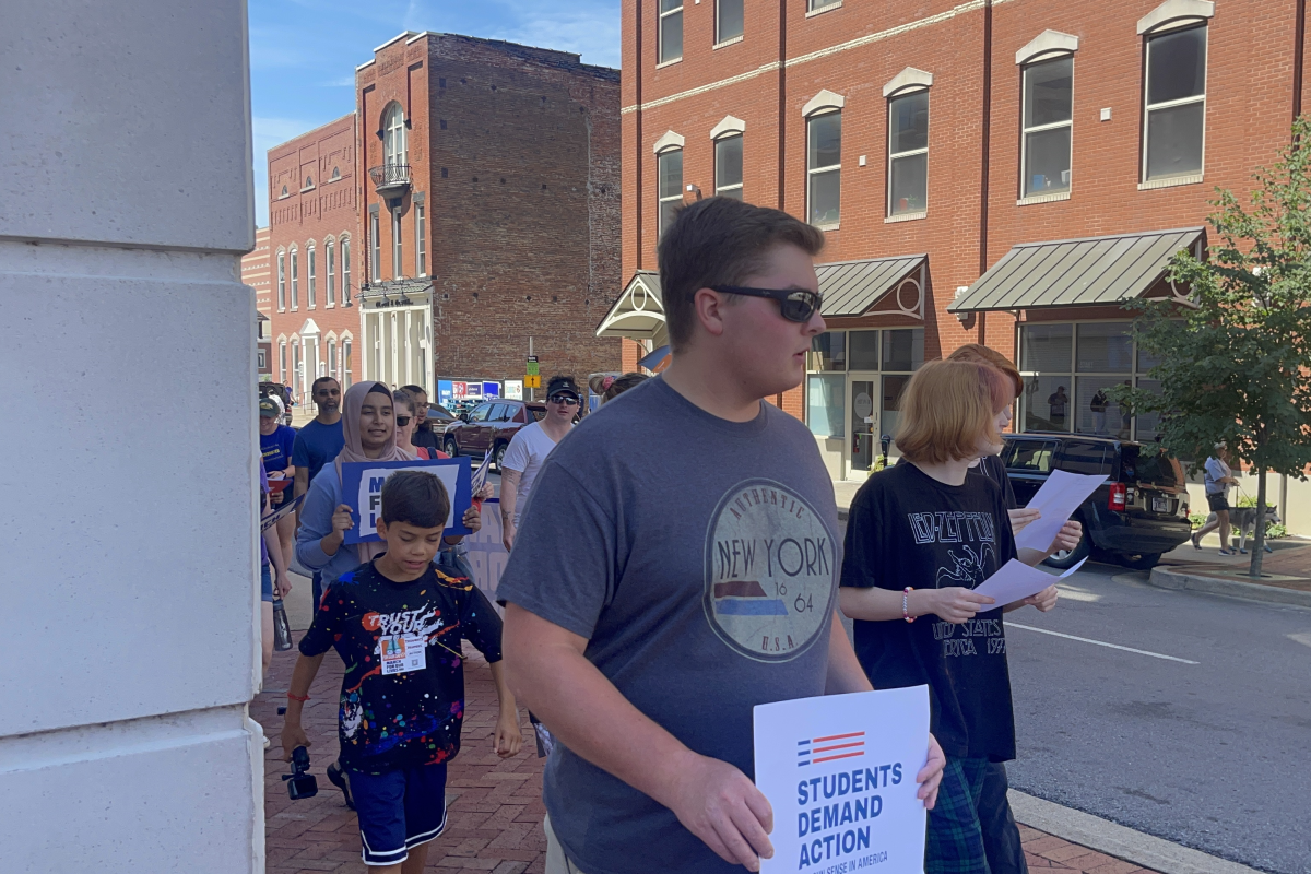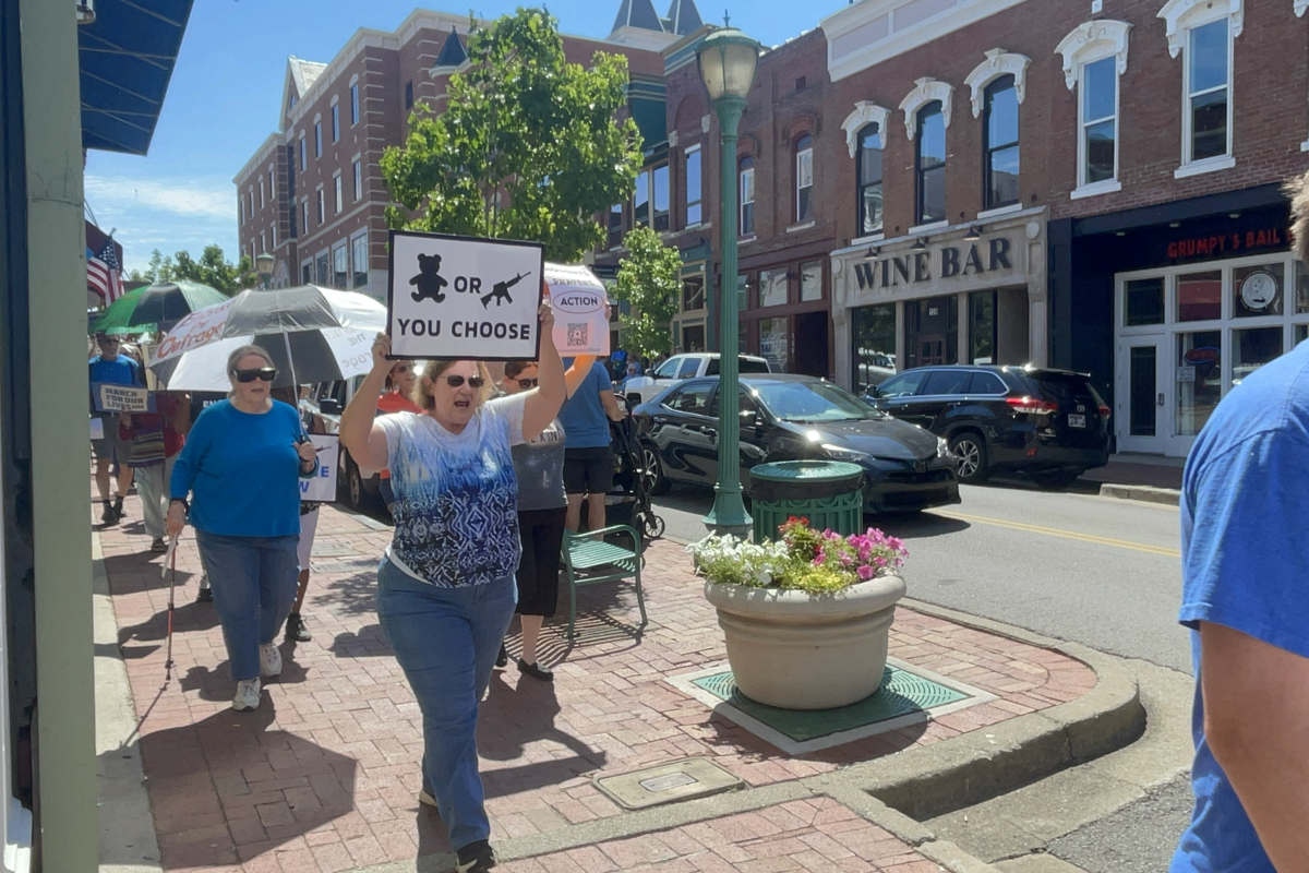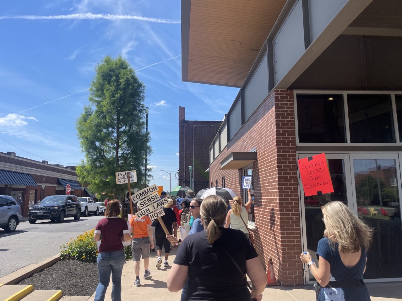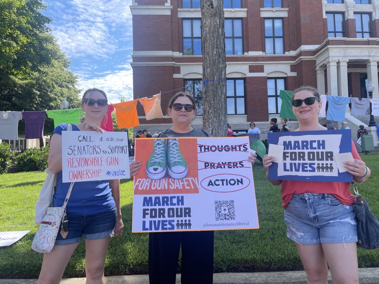 Joy Rice, an organizer of Clarksville Indivisible, told Clarksville Now that they weren’t protesting to take guns away, but rather to keep them out of the hands of dangerous people.