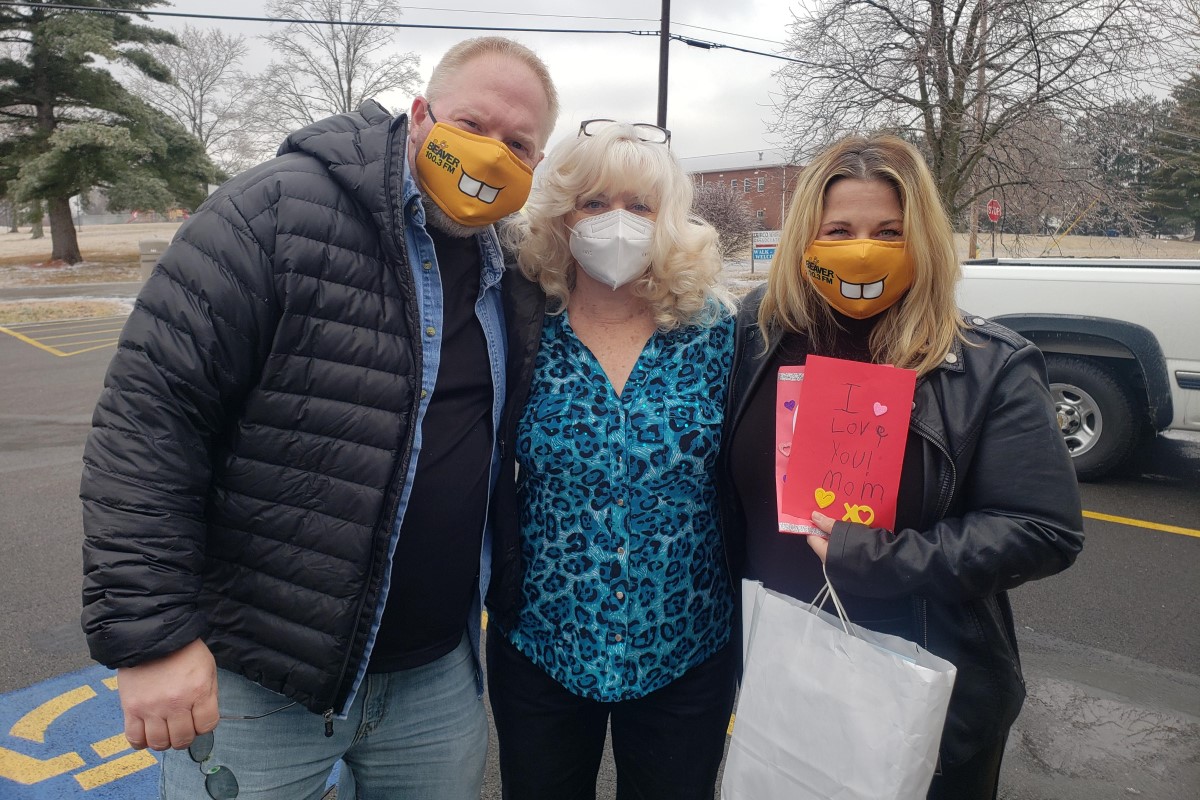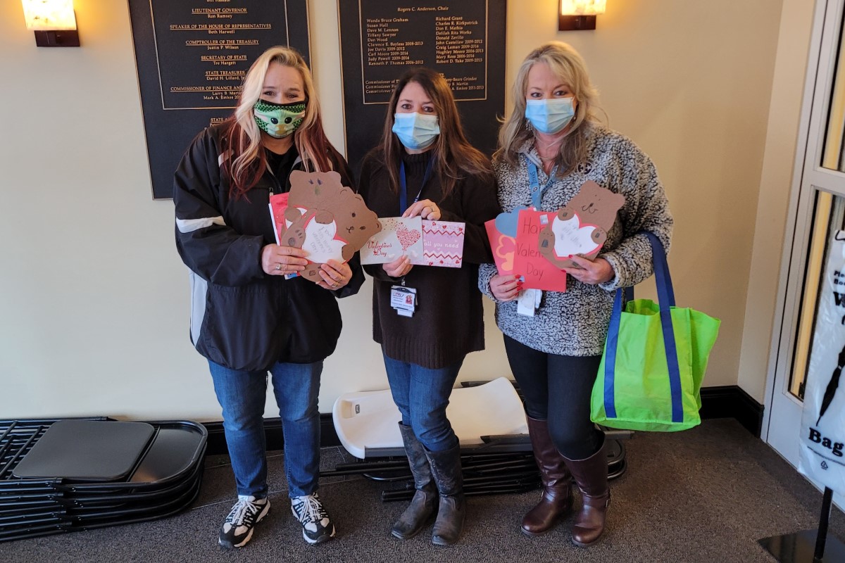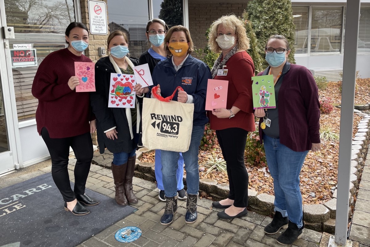 Monica Reed of Rewind 94.3, center, delivers Valentine’s Day cards to seniors this week as part of Letters of Love.