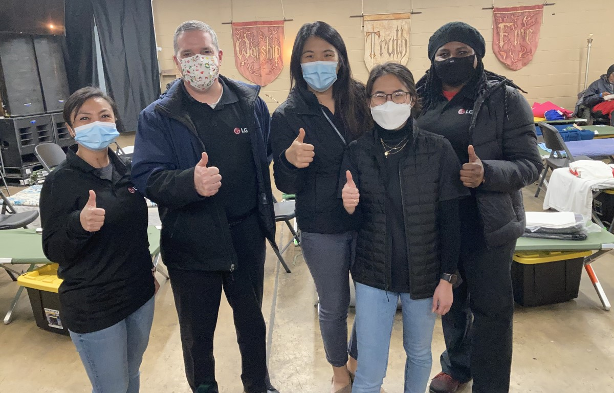 Also, dozens of local employees, from line workers to the president of the factory, volunteered at Manna all week, and LG donated 2,000 masks to Manna.
