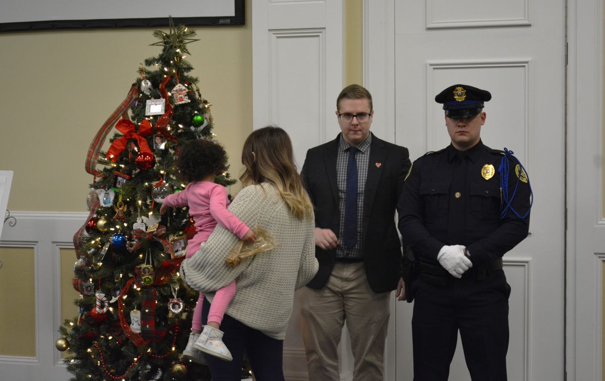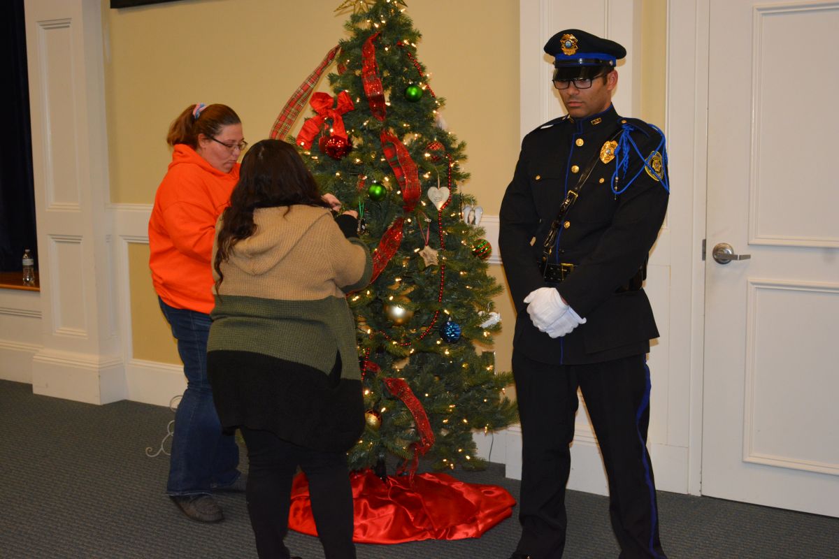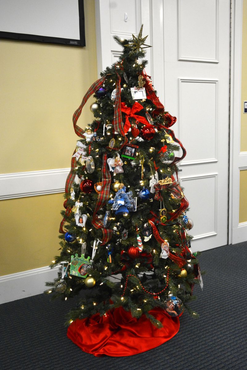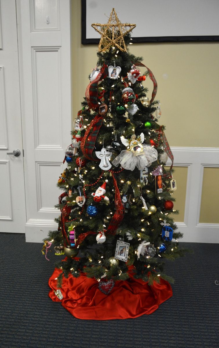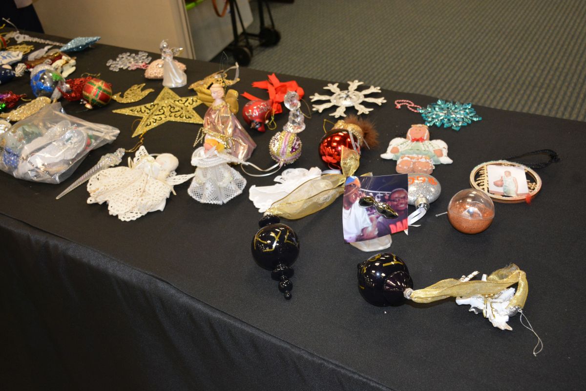 The ceremony is a memorial for those who have lost their lives to homicide or violence. Family and friends of victims along with law enforcement placed a handmade Christmas ornament on two Christmas trees. Before placing their ornament on the tree, the family or friend of the victim would announce who they were and the name of the person they had lost.