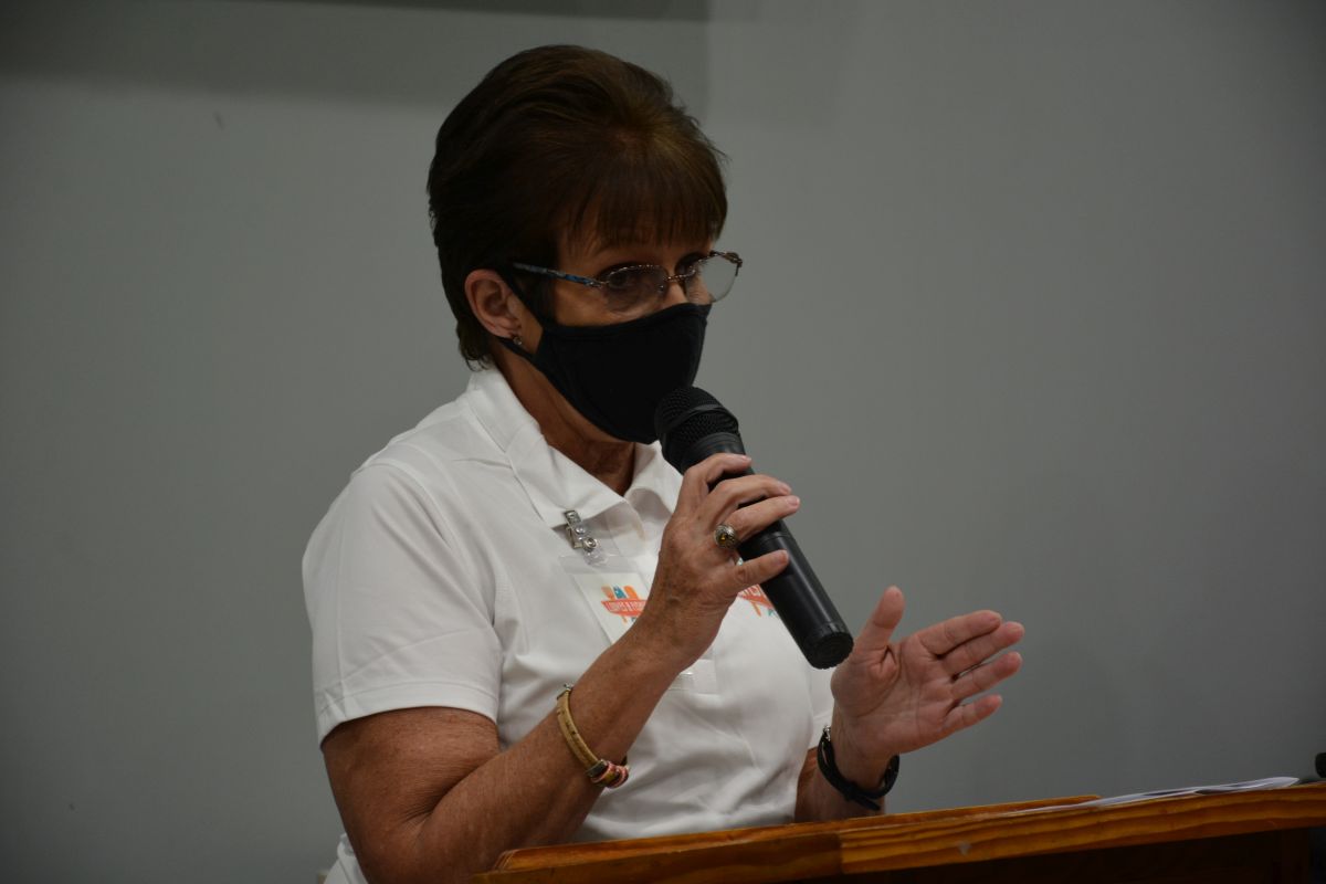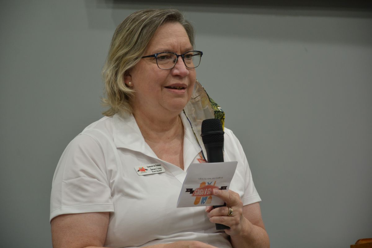 Loaves and Fishes Board Member Donna Richardson speaks at the Loaves and Fishes volunteer dinner on Fri., September 24 2021 (Lee Erwin).