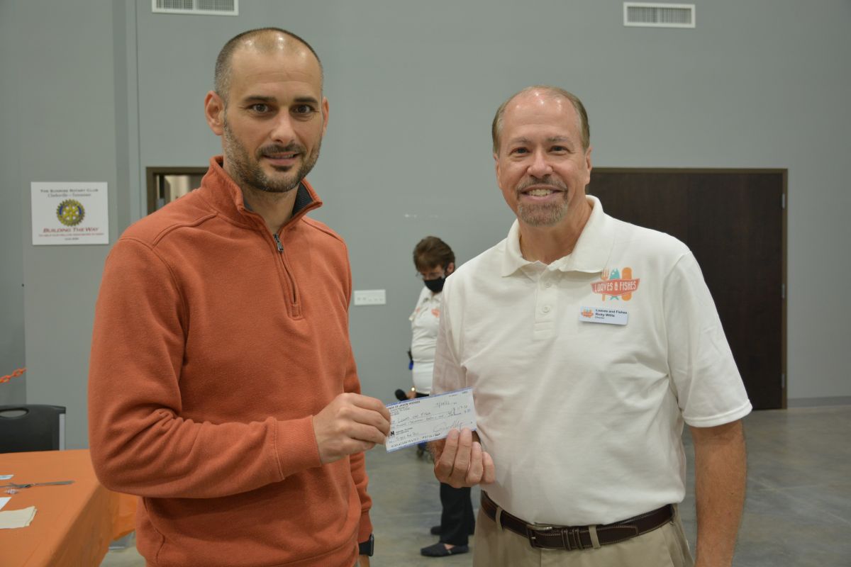During the evening, state Rep. Jason Hodges, presented a check to the organization to cover the cost of making signs to go inside Clarksville Transit System buses. The signs remind those riding the bus of how to find Loaves and Fishes and get a free meal Monday-Saturday.