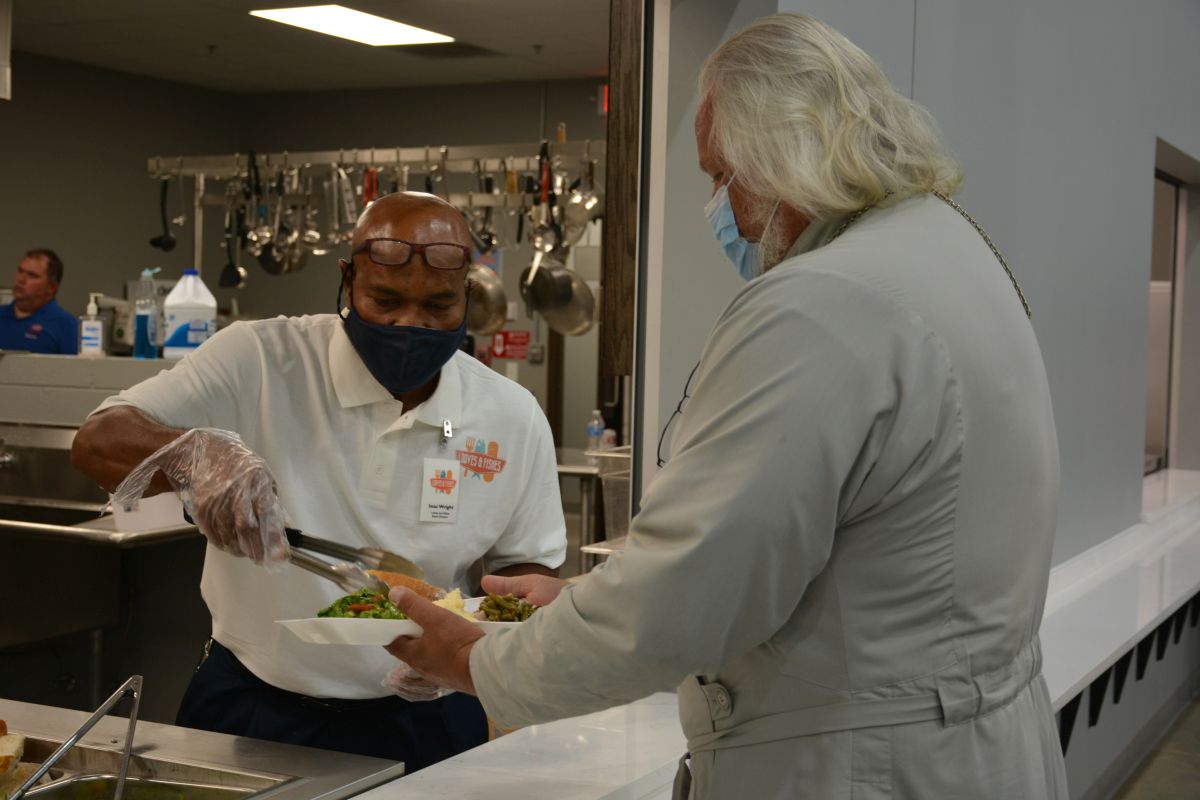 A volunteer is served a meal at the Loaves and Fishes volunteer dinner on Fri., September 24 2021 (Lee Erwin).