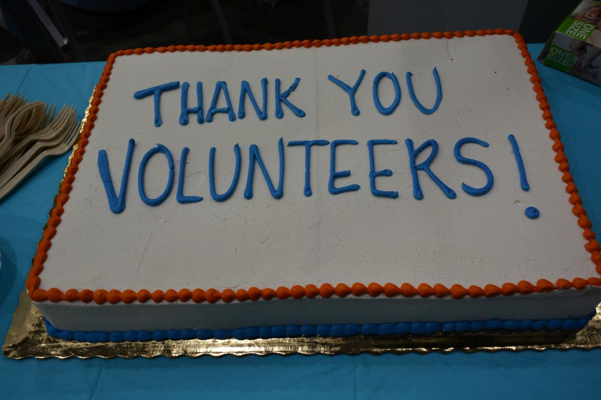 Loaves and Fishes volunteers receive a cake at the Loaves and Fishes volunteer dinner on Fri., September 24 2021 (Lee Erwin).