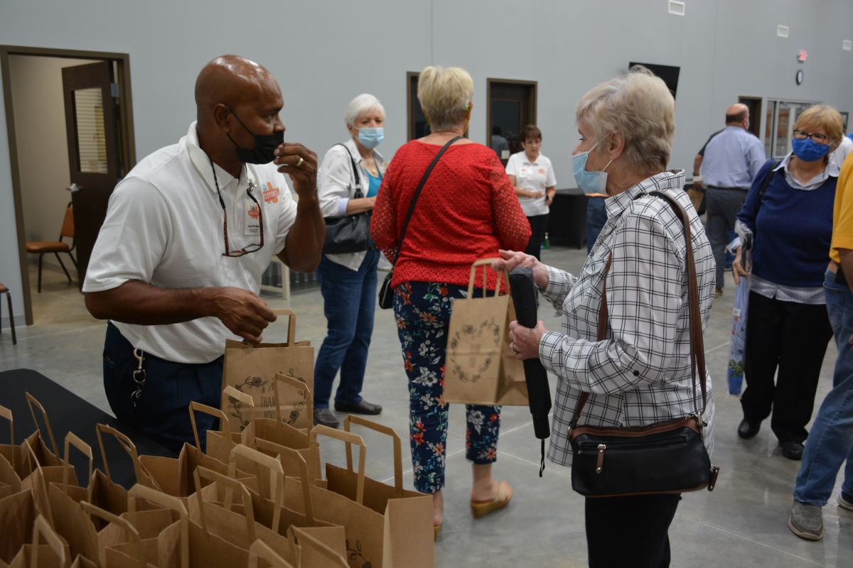 Loaves and Fishes volunteers receive free goodie bags at the Loaves and Fishes volunteer dinner on Fri., September 24 2021 (Lee Erwin).