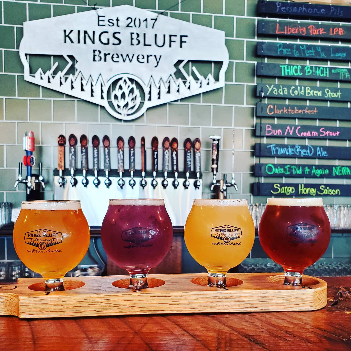 Kings Bluff also works with local businesses to build their own house beers, like the Wicked Red IPA served at Wicked Good Sandwiches, and the Yada Cold Brew Stout, served at Yada on Franklin.
