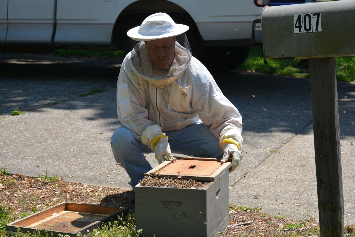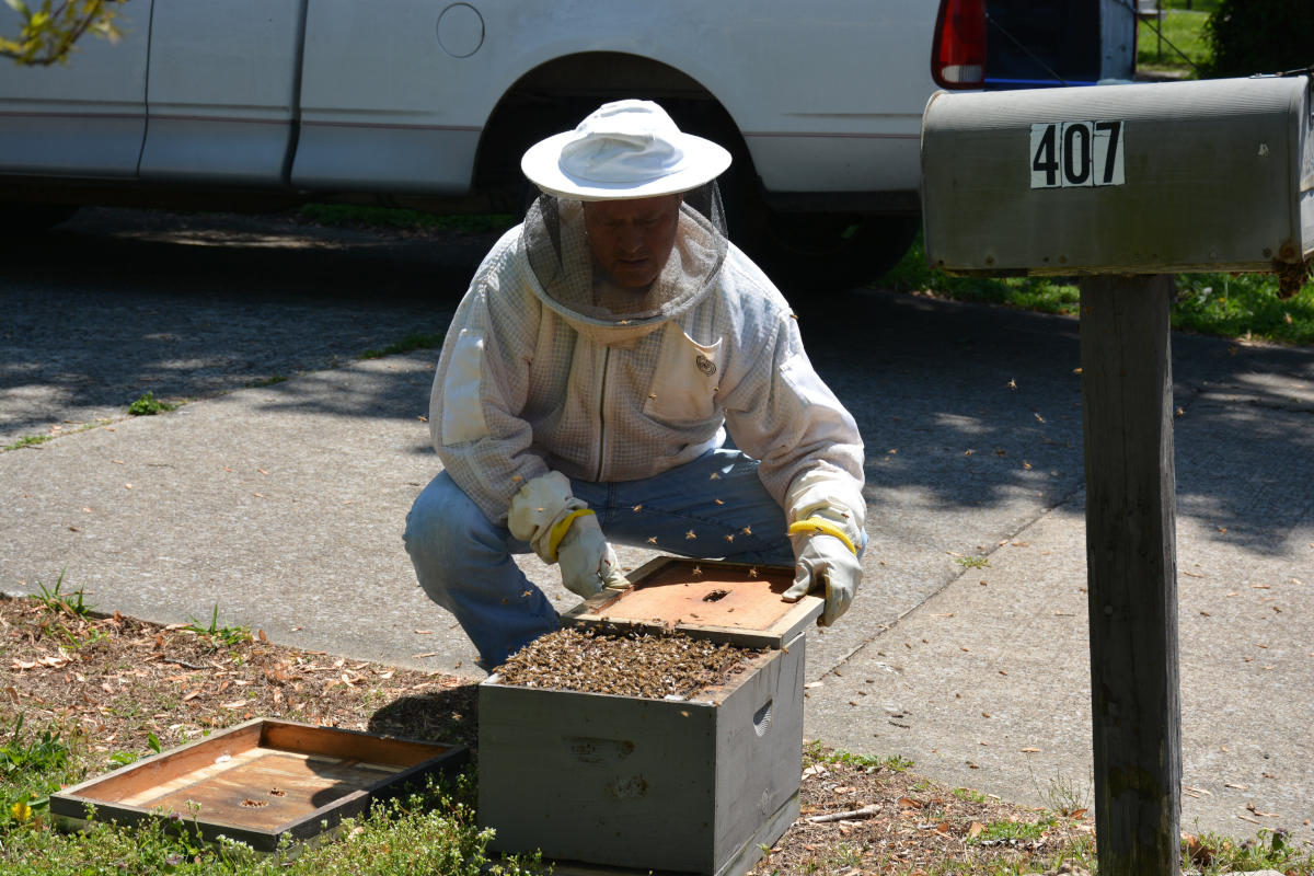 Groppel took up beekeeping at a young age from his uncle. He helped to refound the Clarksville-Montgomery County Beekeeping Association, which now has hundreds of members. He has been removing swarms for a few years now, and usually relocates 2-3 per week.