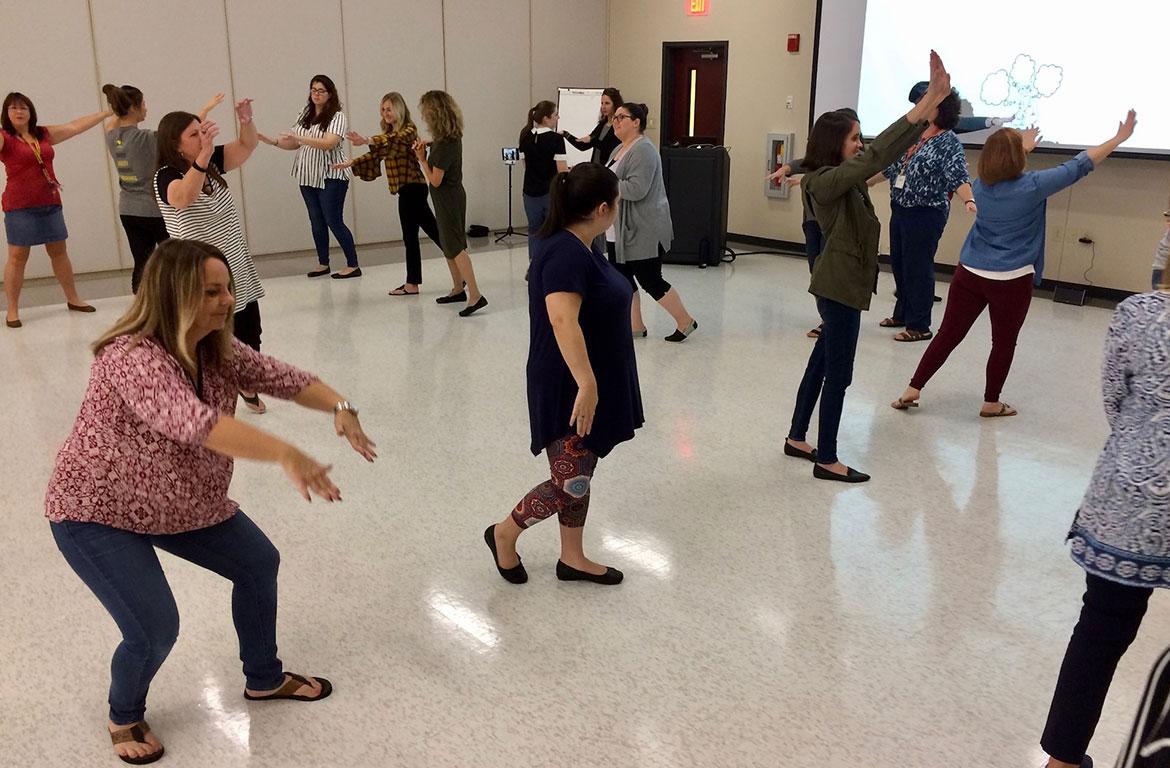 More than 20 teachers attended an arts integration professional development workshop Oct. 2 at the Clarksville-Montgomery County School System’s Central Services-South building. Austin Peay’s Center of Excellence for the Creative Arts paid for the workshop, led by John F. Kennedy Center for the Performing Arts teaching artist Randy Barron.