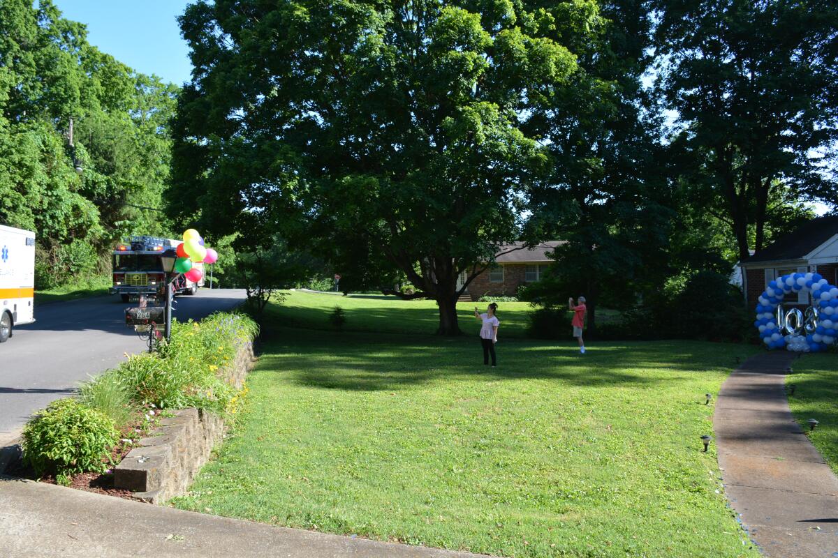 Since COVID-19 and social distancing made throwing a party risky, Dr. Willard’s friends and family organized a drive-by parade in front of his house. Local first responders even joined in, driving by with ambulances and fire engines.