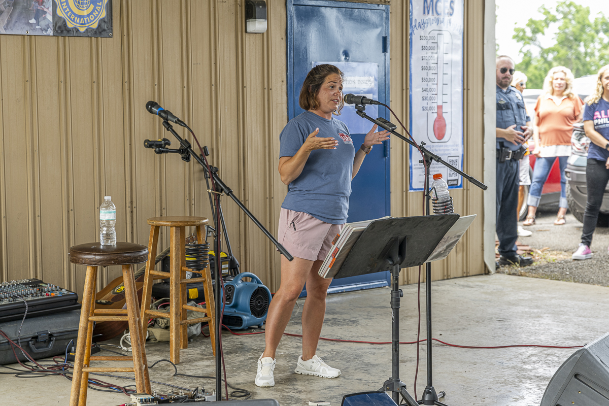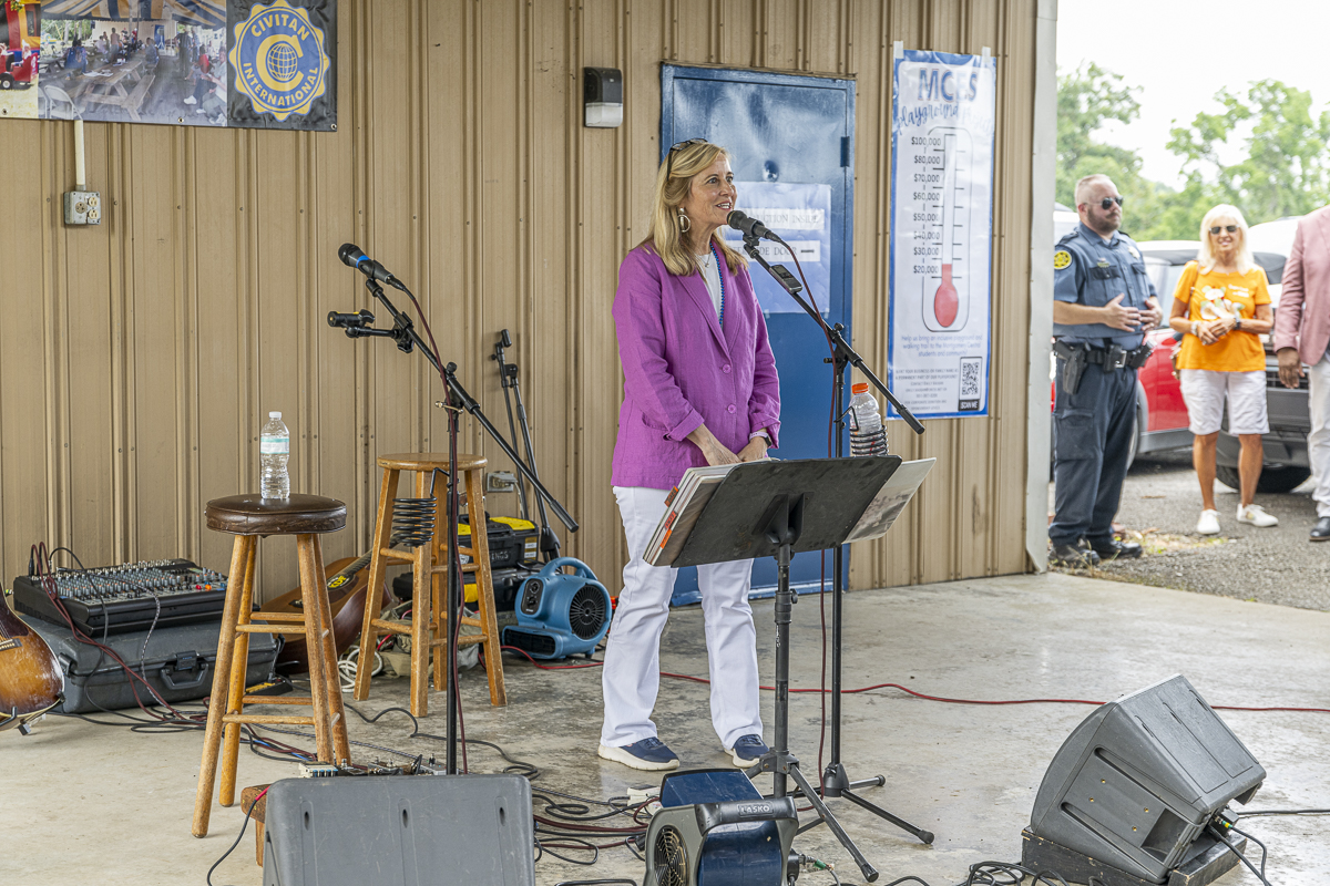 Property Assessor Erinne Hester speaks at the Annual Lone Oak Picnic. July 27, 2024. (Jeff Danault)