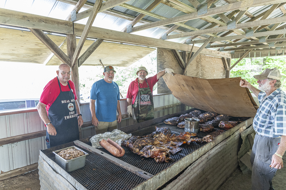 The men of the Civitan Club of Clarksville cooking some amazing food at the Annual Lone Oak Picnic. July 27, 2024. (Jeff Danault)