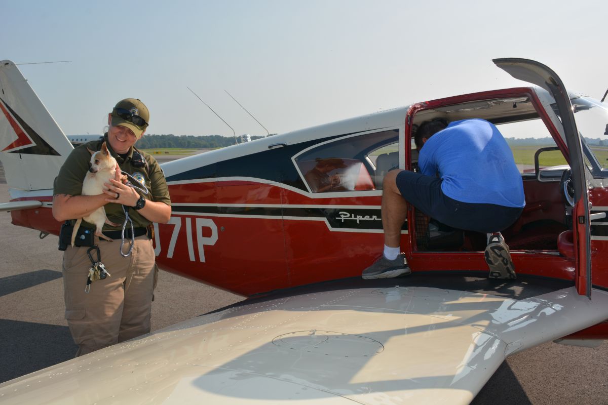 Paul Schechter, with Pilots N Paws, met Lucy and Animal Control at the Clarksville Regional Airport Thursday morning to take her first to Huntington, West Virginia, where he would meet another pilot who would fly her home York, Pennsylvania.