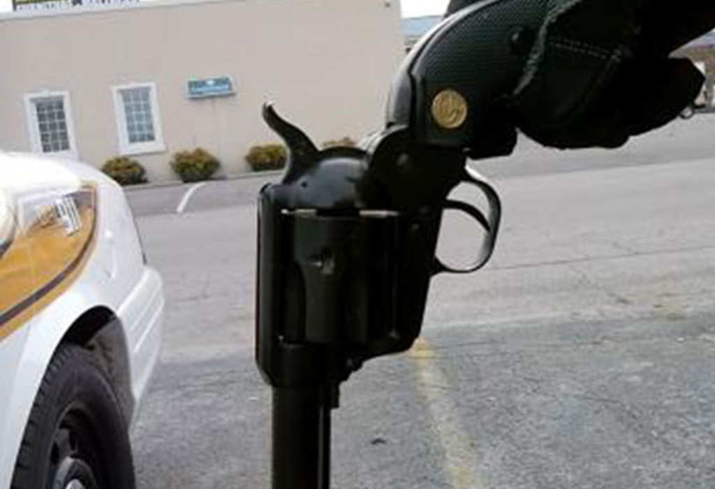 Police found a 22 caliber revolver inside the cloth bag, strapped into a holster with the hammer forward. When the bag was dropped, the hammer of the revolver hit the floor, causing it to discharge.