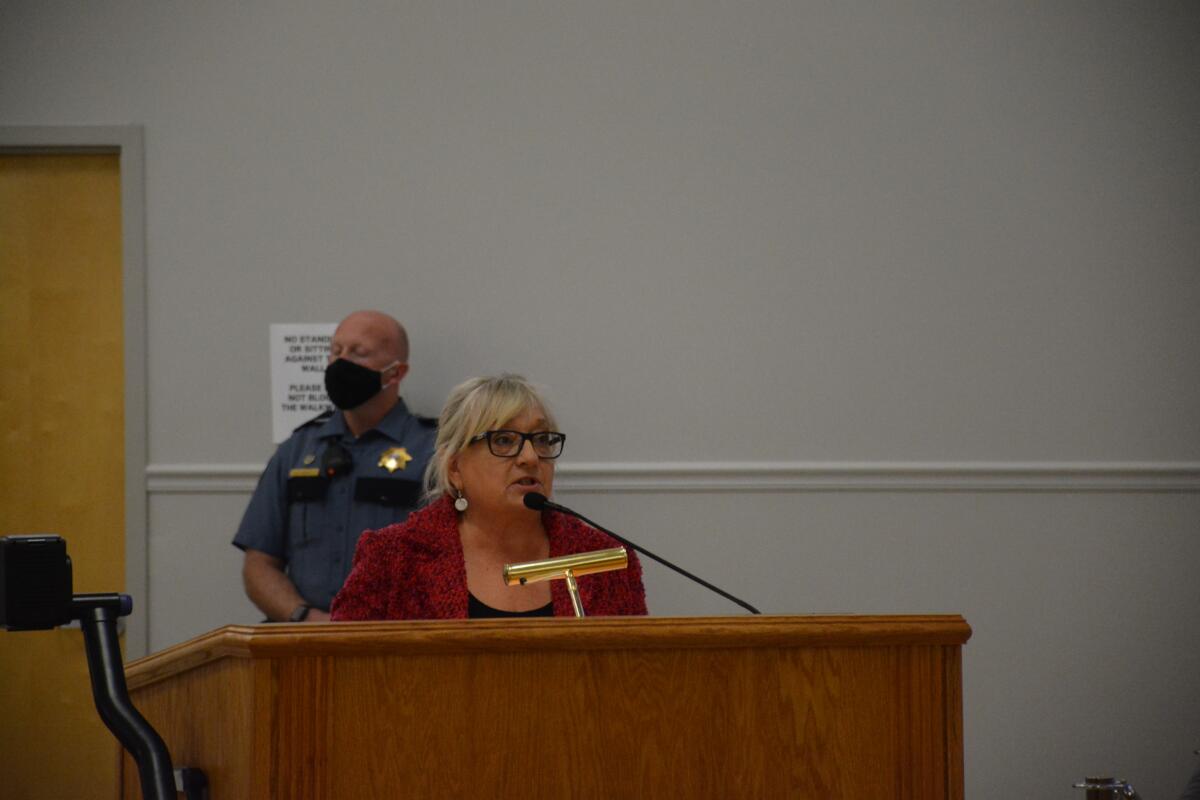 Callie Cook, who was the first to publicly take issue with the board’s public participation policy in May during a protest at a meeting, told the board she was glad so many people had shown up to the meeting.