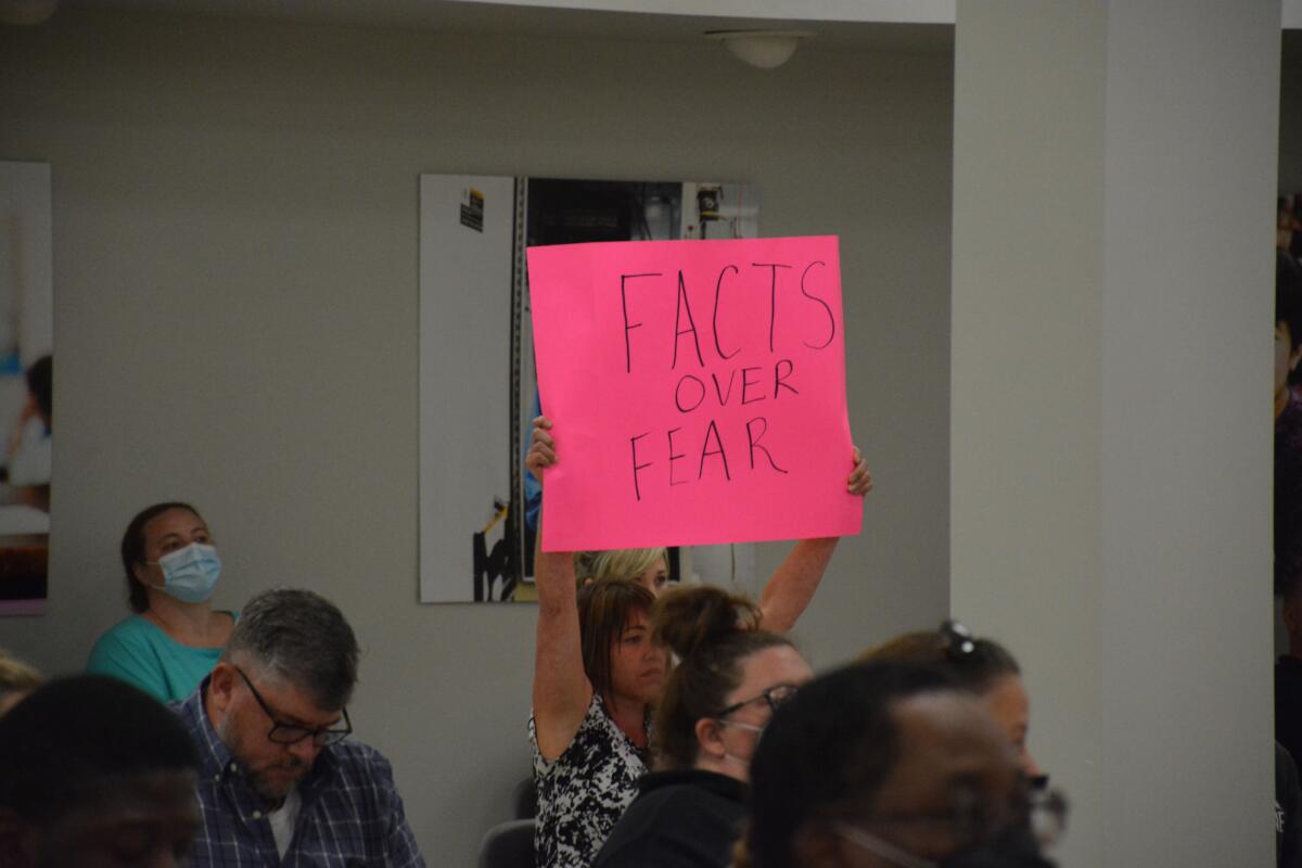 Another audience member shouted out, “This is Tennessee, not California,” while another tried to get everyone to calm down and allow the board to talk.