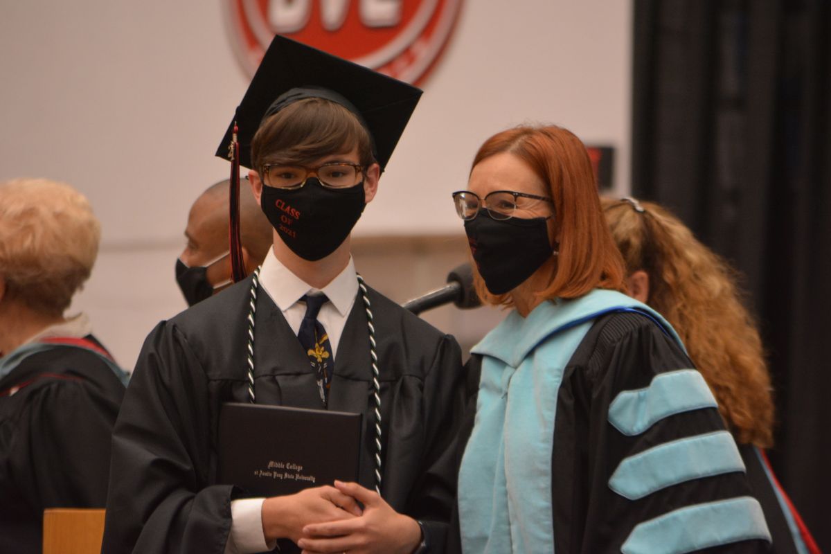CLARKSVILLE, TN (CLARKSVILLE NOW) – The Middle College at Austin Peay State University held its 13th commencement Tuesday, May 25, at APSU’s Dunn Center. The Class of 2021 featured 60 students who received diplomas.