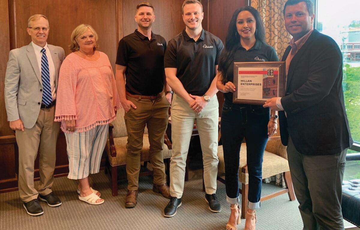 “For your forward-looking and wide-ranging efforts in the heart of Clarksville-Montgomery County, the CBID Planning & Development Committee of the Clarksville-Montgomery County Economic Development Council celebrate owners Lillie and Leo Millan and the entire Millan team by presenting you with the first CBID Redevelopment Recognition,” said Daniel Binkley, chair of the P&D Committee. “Millan Enterprises has consistently demonstrated desire and ingenuity in leading our community to the next level with every project it has undertaken.”