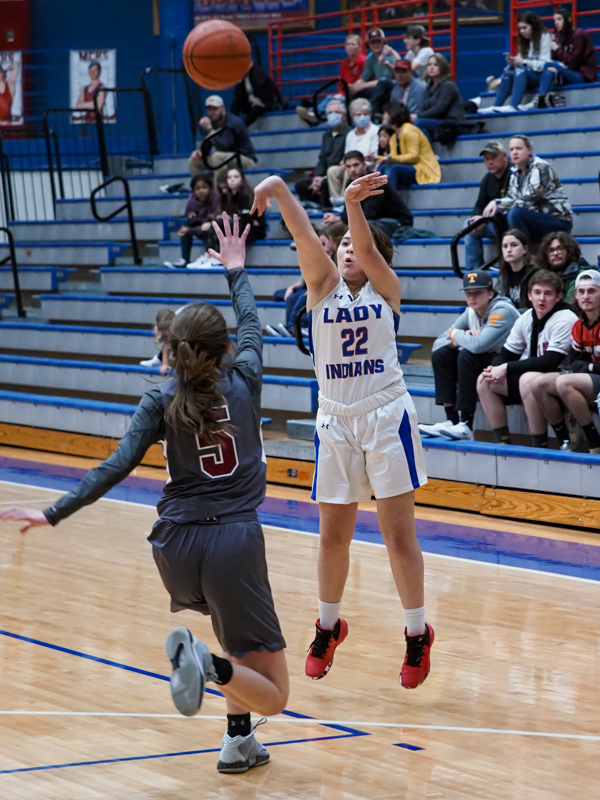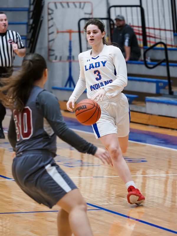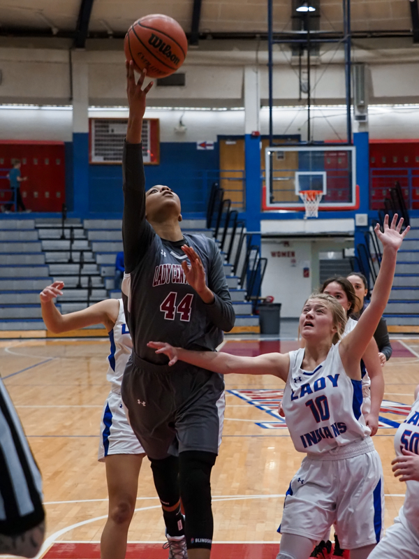 The first quarter ended with the visitors up, 14-3, and they never looked back. Like many teams, Central found it hard to defend against such size without fouling. This ended up being a physical game for some and a pair of leading starters for the Lady Indians found themselves in foul trouble early on.