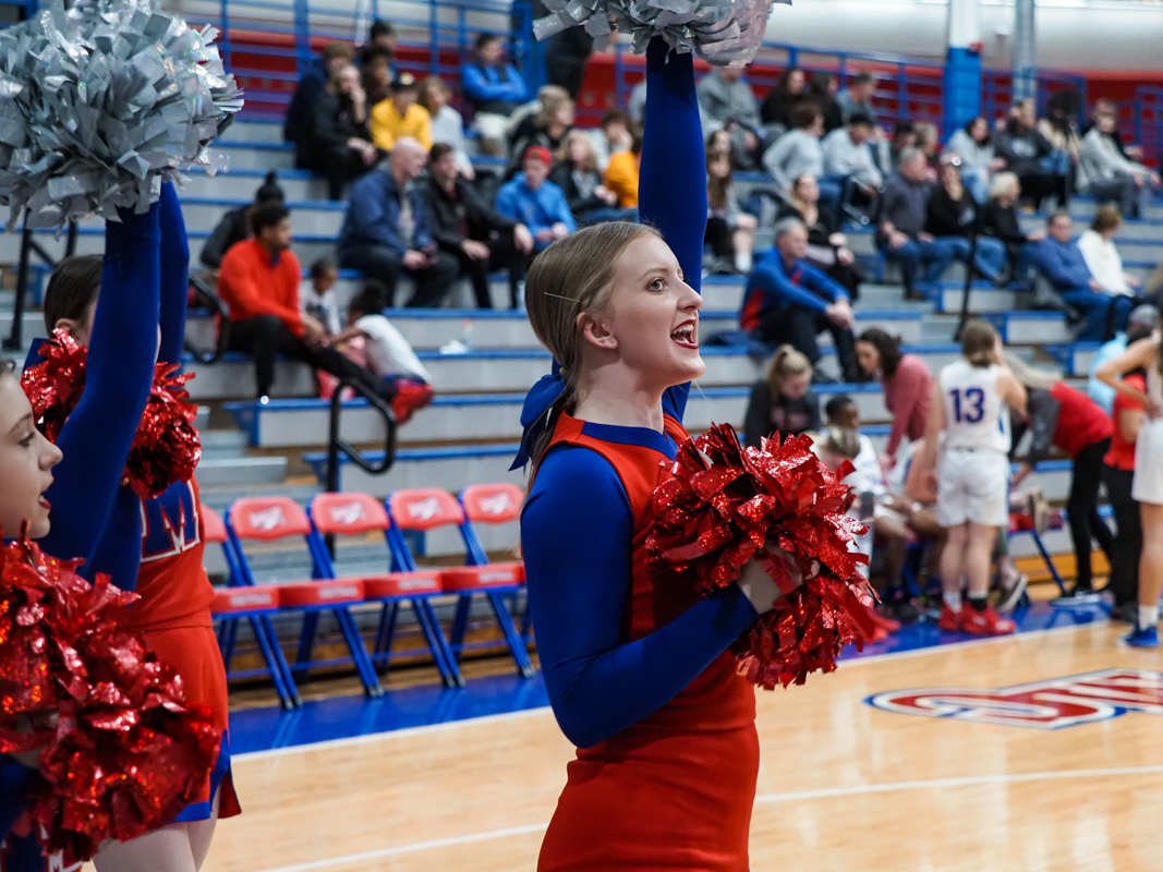 The MCHS Cheer Team performs as Montgomery Central plays Clarksville Christian School in girls basketball on Jan. 14, 2022. (Ryan Vinson)