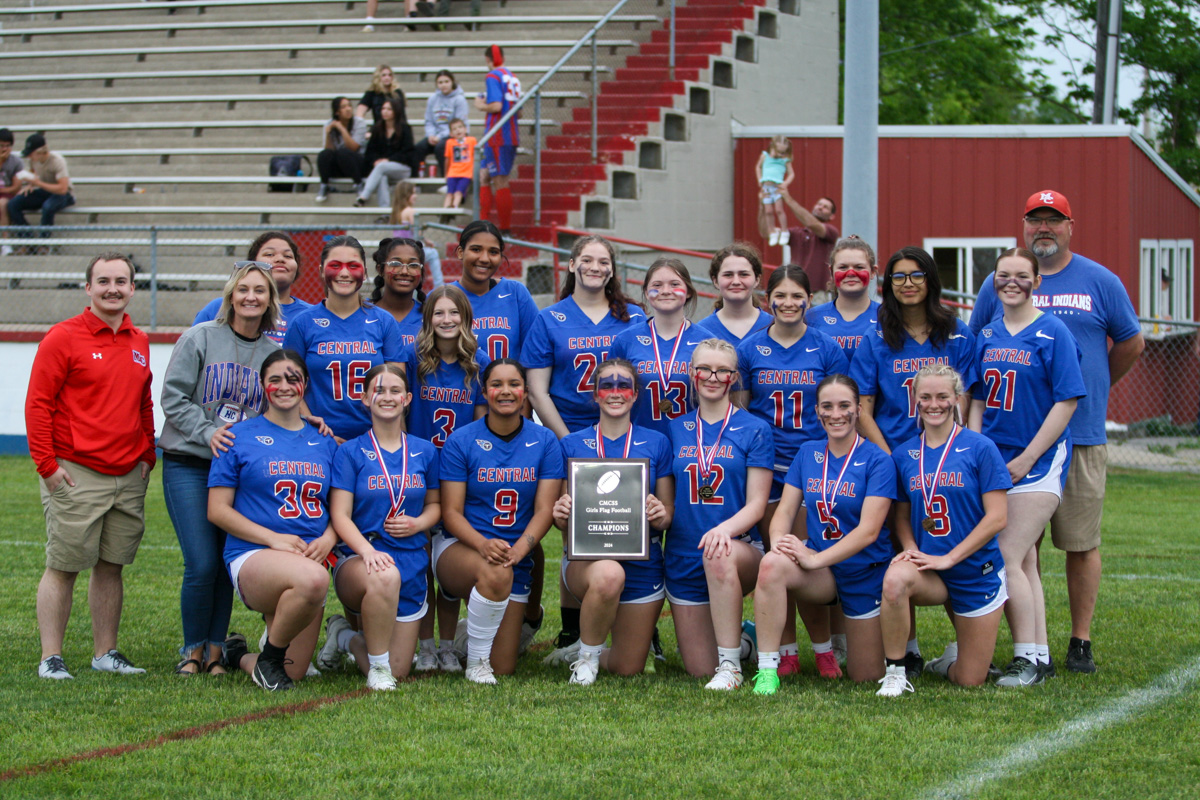 The Montgomery Central Indians beat the West Creek Coyotes in the flag championship, 14-6. (Knox Rives)