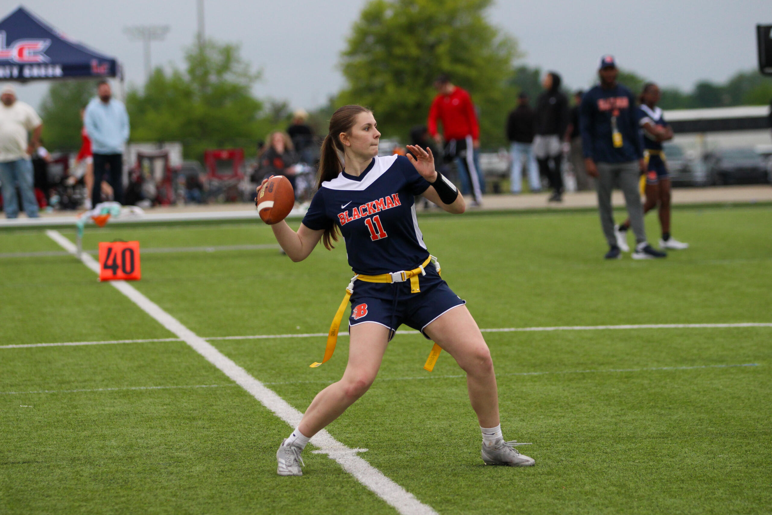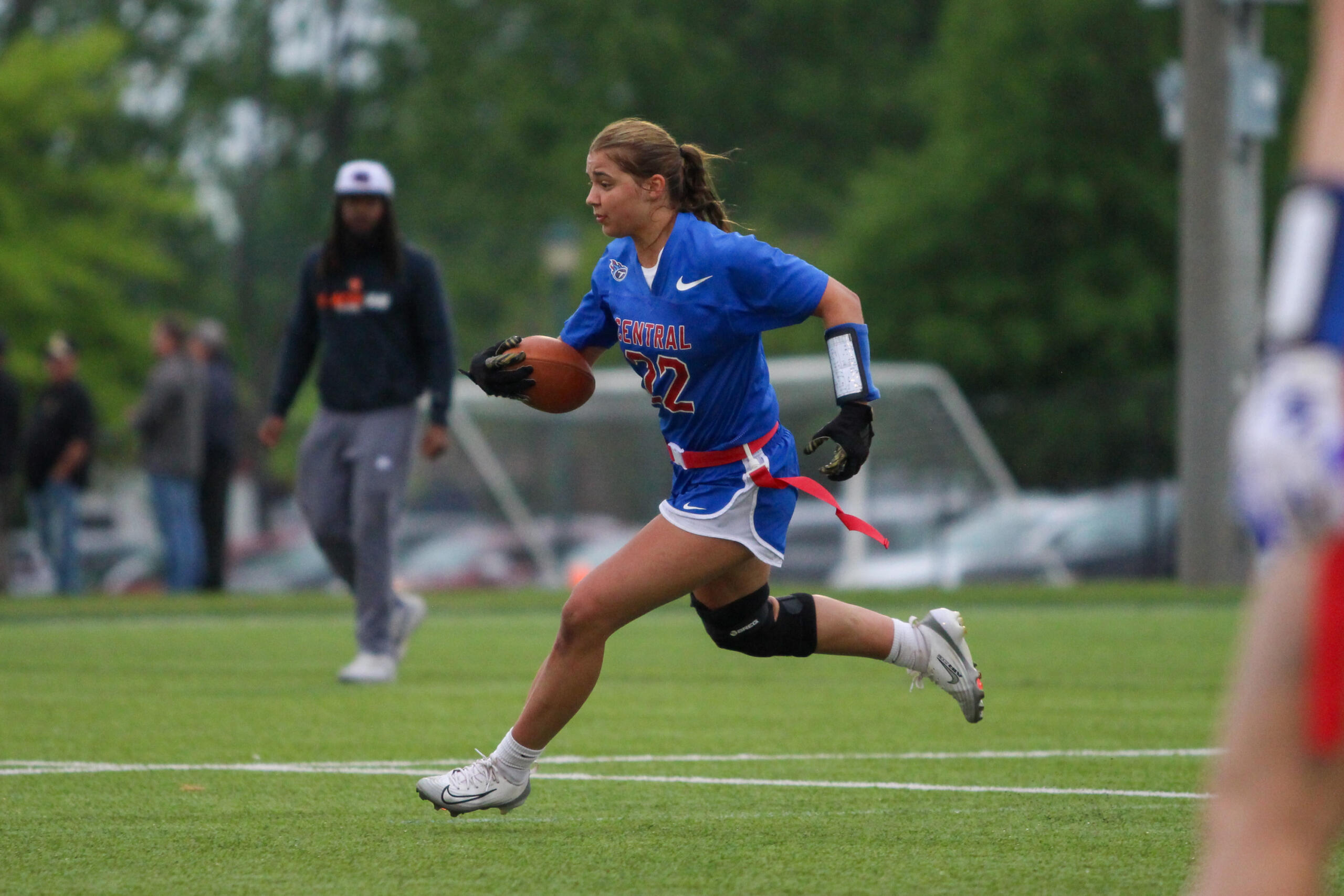 In game two, the Indians and Blackman Blaze were in a battle, with Libby Dominiak scoring the lone touchdown of the first half to bring the score to 6-6. Central receiver Jocelyn Kolozsy caught a drag route in the endzone to extend the lead to start off the second half. Blackman responded with a drive down the field of their own, before two-way player Audrey Levendusky collected one of her two interceptions on the night and ran it back the length of the field for a touchdown. The Indians added one more touchdown before the end of the game and won 25-6.
