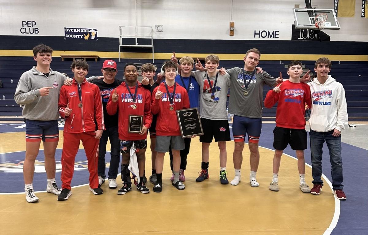 The Indians put six wrestlers into the finals, and all six won their finals matches, earning six titles to put the team far ahead of second place Wilson Central by 52.5 points at the 25-team event, outpacing the large school program 229.5-177. Wesley Sudderth, Jack Levendusky, Tamarion Johnson, Joshua Hodges, Cayson Rasch, and Zach Nord all won titles for Montgomery Central.
