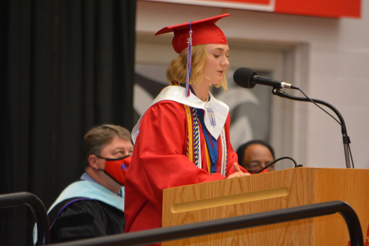 Senior Class President Kaylee Denton welcomed everyone to the ceremony with Principal Christy Houston introducing MCHS faculty and guests. Makayla Eller gave the salutatorian address, Trinity Pulley gave the valedictorian address, and final words came from Student Government President Emily Greene.
