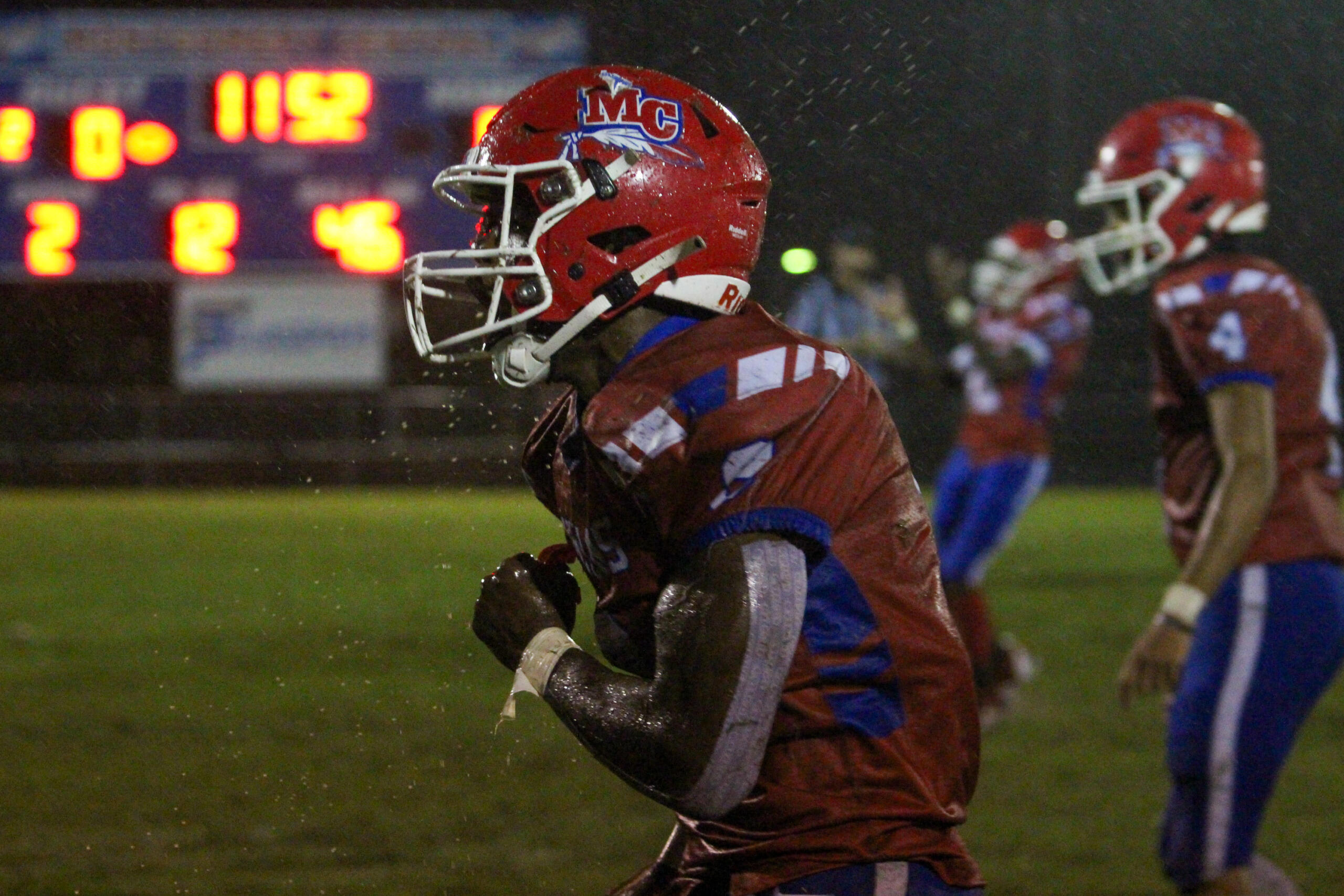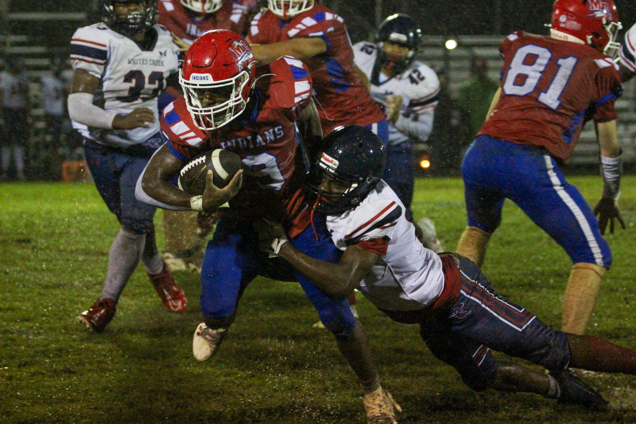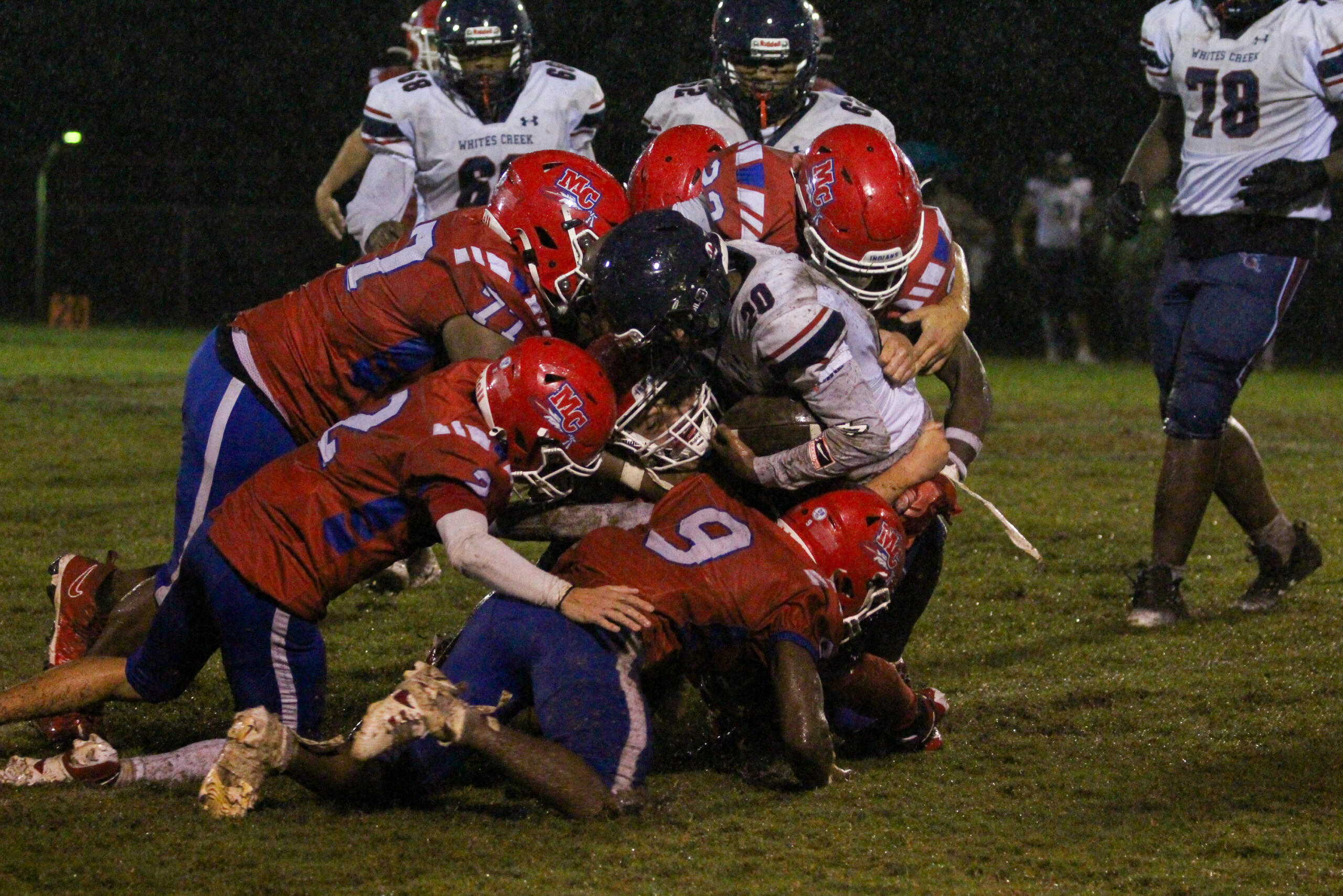 CLARKSVILLE, TN (CLARKSVILLE NOW) – The Montgomery Central Indians hosted the Whites Creek Cobras for a homecoming region matchup on Friday. It was muddy and rainy, and neither offense scored. However, a 102-yard pick-six from Kanyon Conner was all the Indians needed, and for the first time in 742 days, it’s a victory for the Indians, winning 8-0 and snapping a 20-game losing streak.