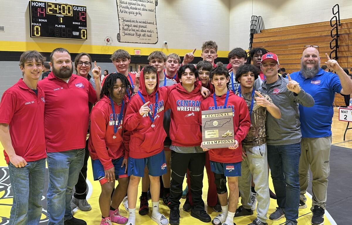 CLARKSVILLE, TN − The Montgomery Central High School varsity boys wrestling team ran away with the team title at the TSSAA Region 7 Championships, winning back-to-back regional titles and landing five champions at the event.