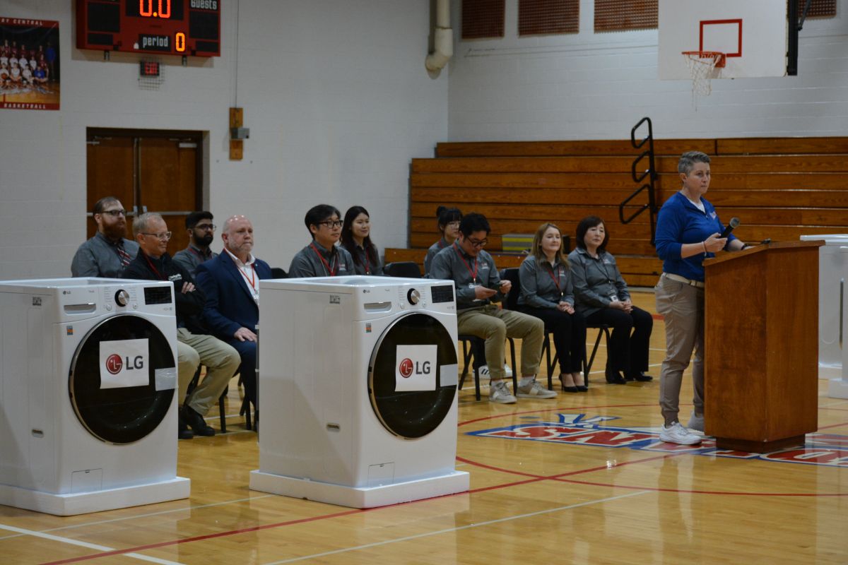 CLARKSVILLE, TN (CLARKSVILLE NOW) – Montgomery Central Middle School hosted visitors from LG Electronics Friday as the local plant presented the school with a donation of three washers and three dryers to help with cleaning the students’ athletic clothing and uniforms.