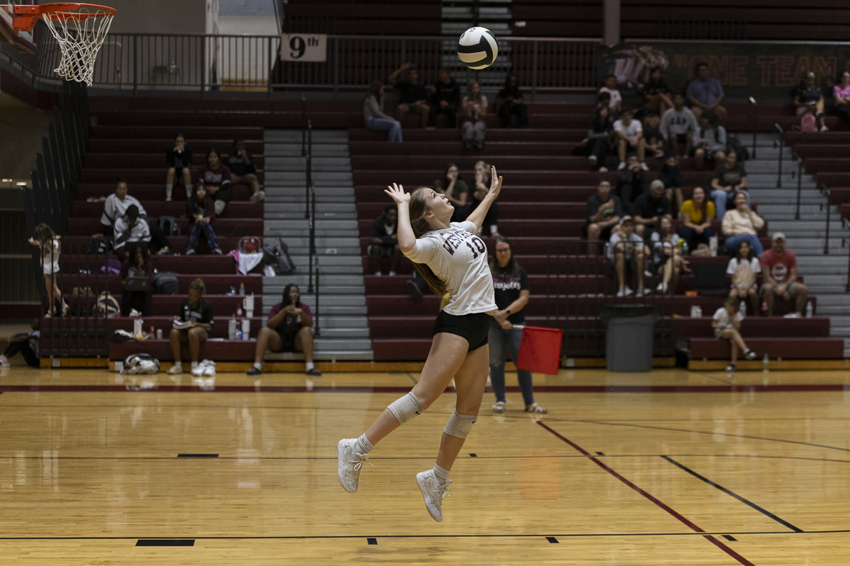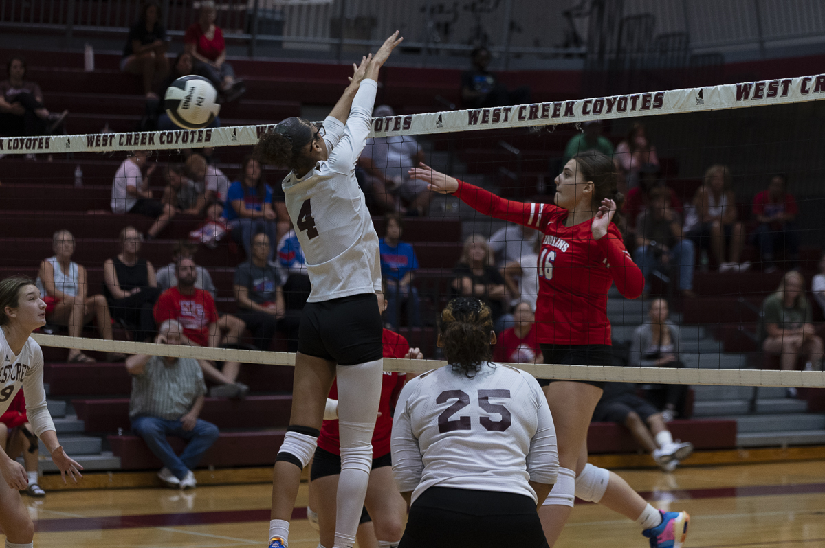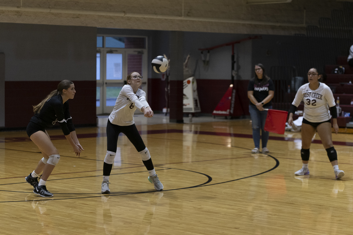 Montgomery Central came out the gate strong, communicating well, getting bounces to go there way, and winning the first two sets, 25-17 and 25-18. However, West Creek responded by winning a very competitive third set by a score of 25-23. West Creek head coach Sarah Rike gave credit to Central but knows the Coyotes can be better.