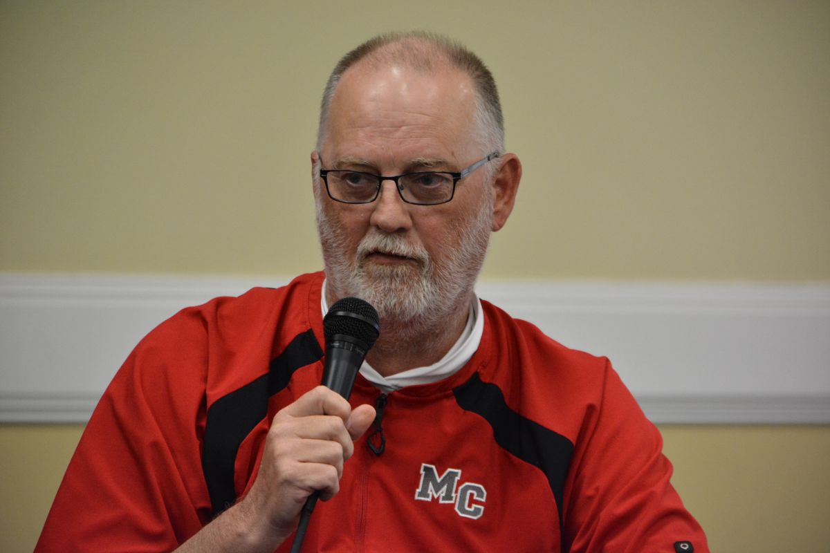 West Creek High baseball coach Terry Arrington speaking on his program.