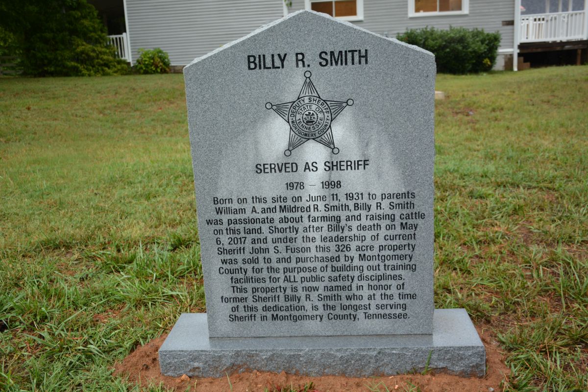 A marker honoring former Montgomery County Sheriff Billy R. Smith at the grand opening of the Montgomery County Public Safety Training Complex that bears his name on, July 26, 2022. (Lee Erwin)