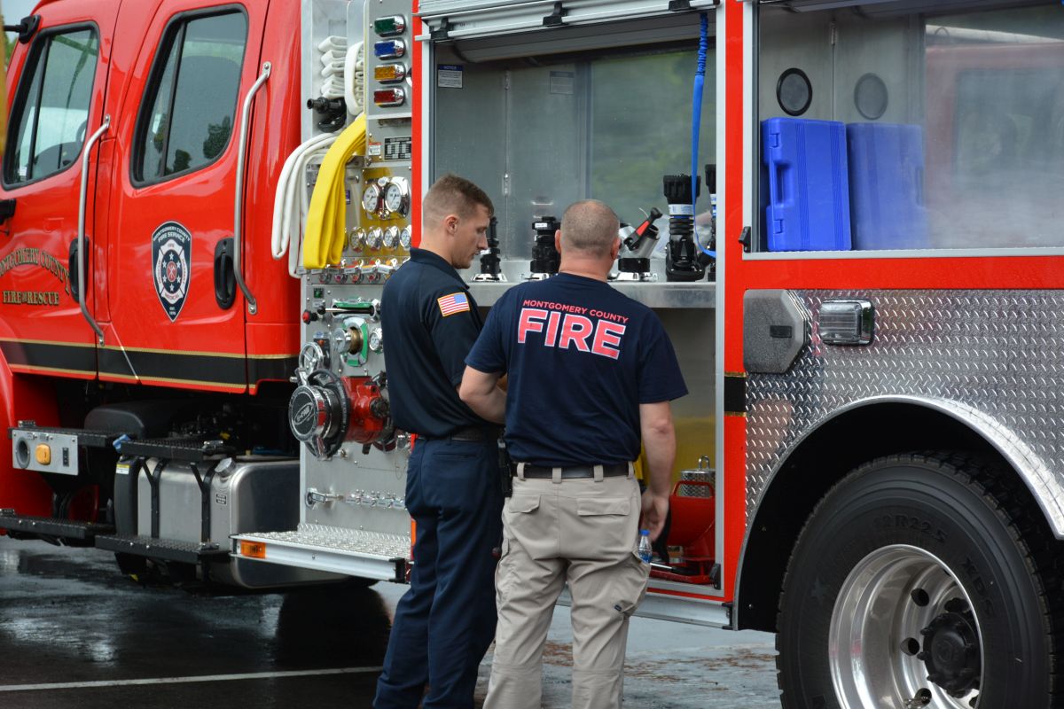 Montgomery County volunteer personnel and fire truck at the grand opening of the Sheriff Billy R. Smith Montgomery County Public Safety Training Complex on, July 26, 2022. (Lee Erwin)