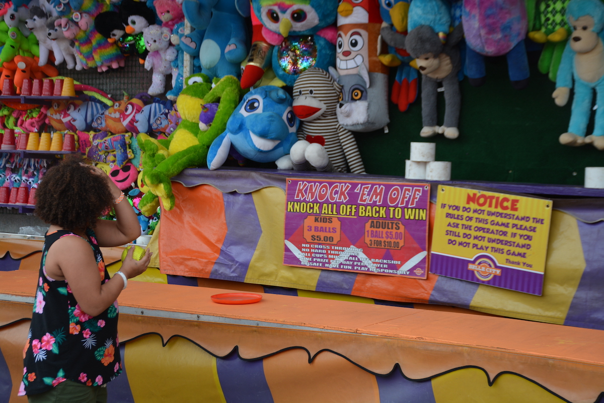 Midway admission is $5 for adults (ages 12 and up), kids 4-11 $3, 3 and under free. Rides have separate charges, and armbands are available for purchase.