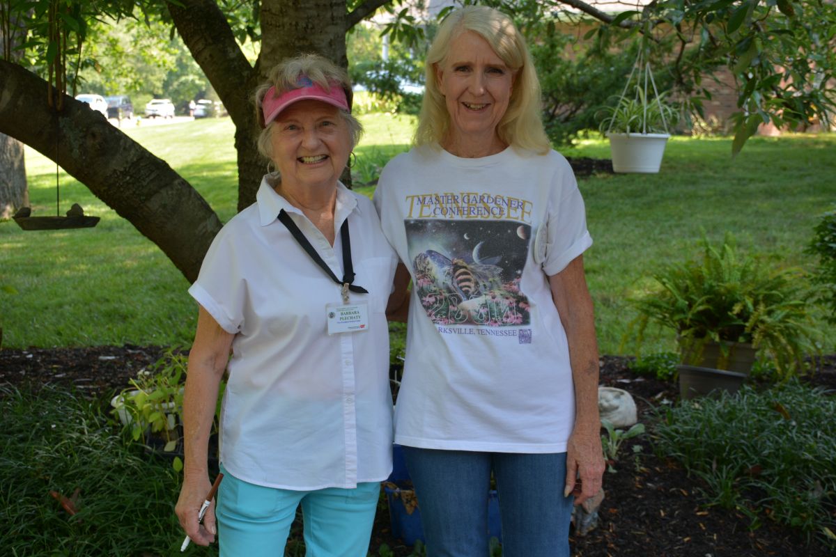 Barbara Plechaty & Shirley Provence at the home of Joan & Dr. Ernie DeWald on the Montgomery County Master Gardeners 2023 Garden Tour on Jun. 24, 2023. (Lee Erwin)