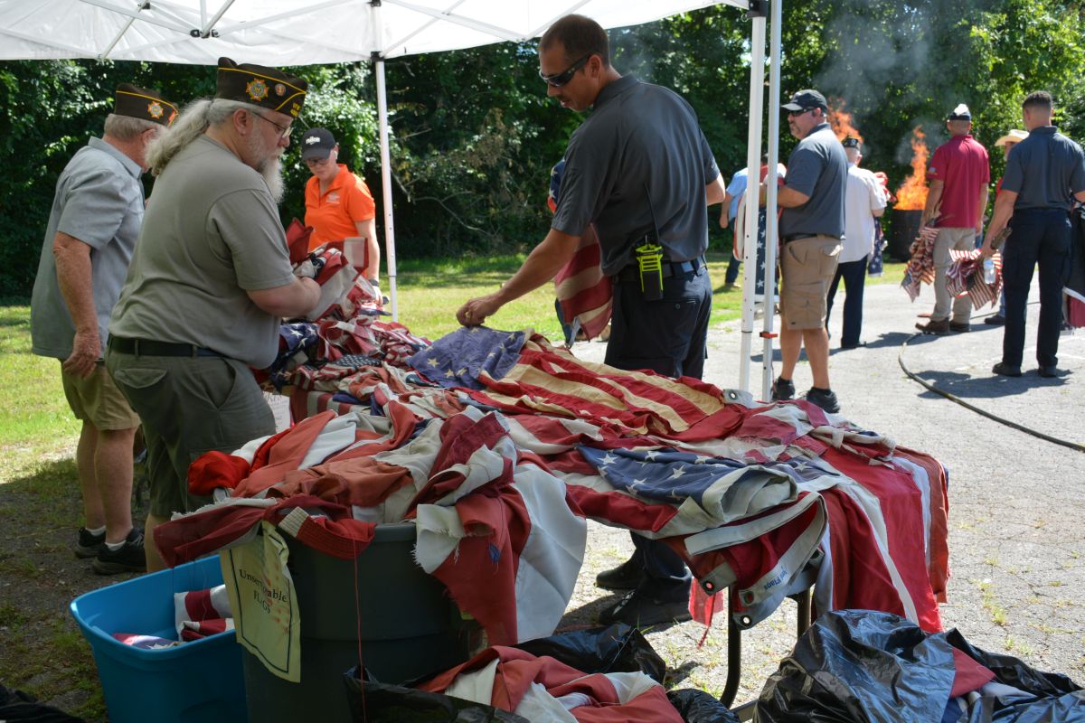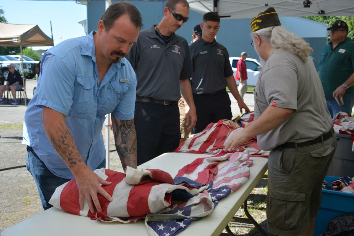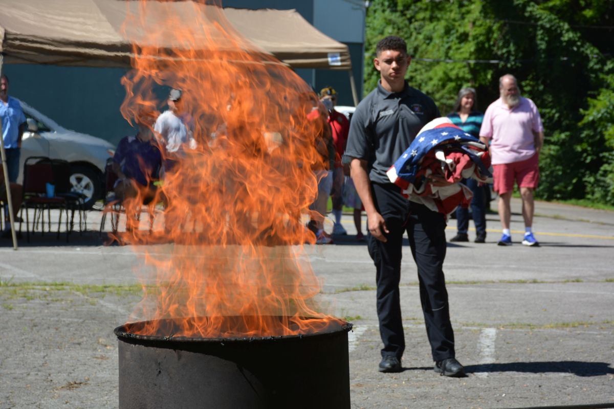Close to 600 worn, damaged, and non-serviceable American and Tennessee state flags were properly destroyed, by burning in a dignified manner at the ceremony. The event takes place each year on June 14, which is the date the U.S. flag was chartered by Congress in 1777.