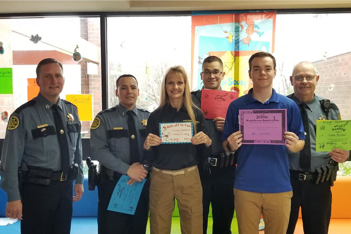 Montgomery County Sheriff John Fuson, along with MCSO employees Lt. Carlos Silva, Deputy Jonas Jackson, Deputy Eddie Mitchell, SRO Dan Atkins, Suzy Shepherd and David Wood, joined in on the fun, visiting Clarksville-Montgomery County elementary schools and reading to students in the classroom. Student’s took time off from their regular studies to enjoy classics like ‘Green Eggs and Ham,’ ‘The Lorax’ and ‘The Cat in the Hat.’