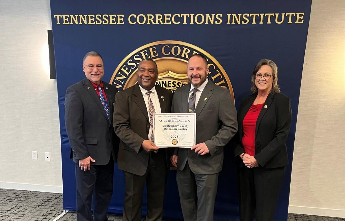 CLARKSVILLE, TN – The Montgomery County Sheriff’s Office was awarded its Tier 1 Accreditation on December 3, 2025, by the Tennessee Corrections Institute. This marks a tremendous milestone for the Sheriff’s Office and the commitment of the staff of the Detention Services Bureau in meeting the newly enhanced standards.
