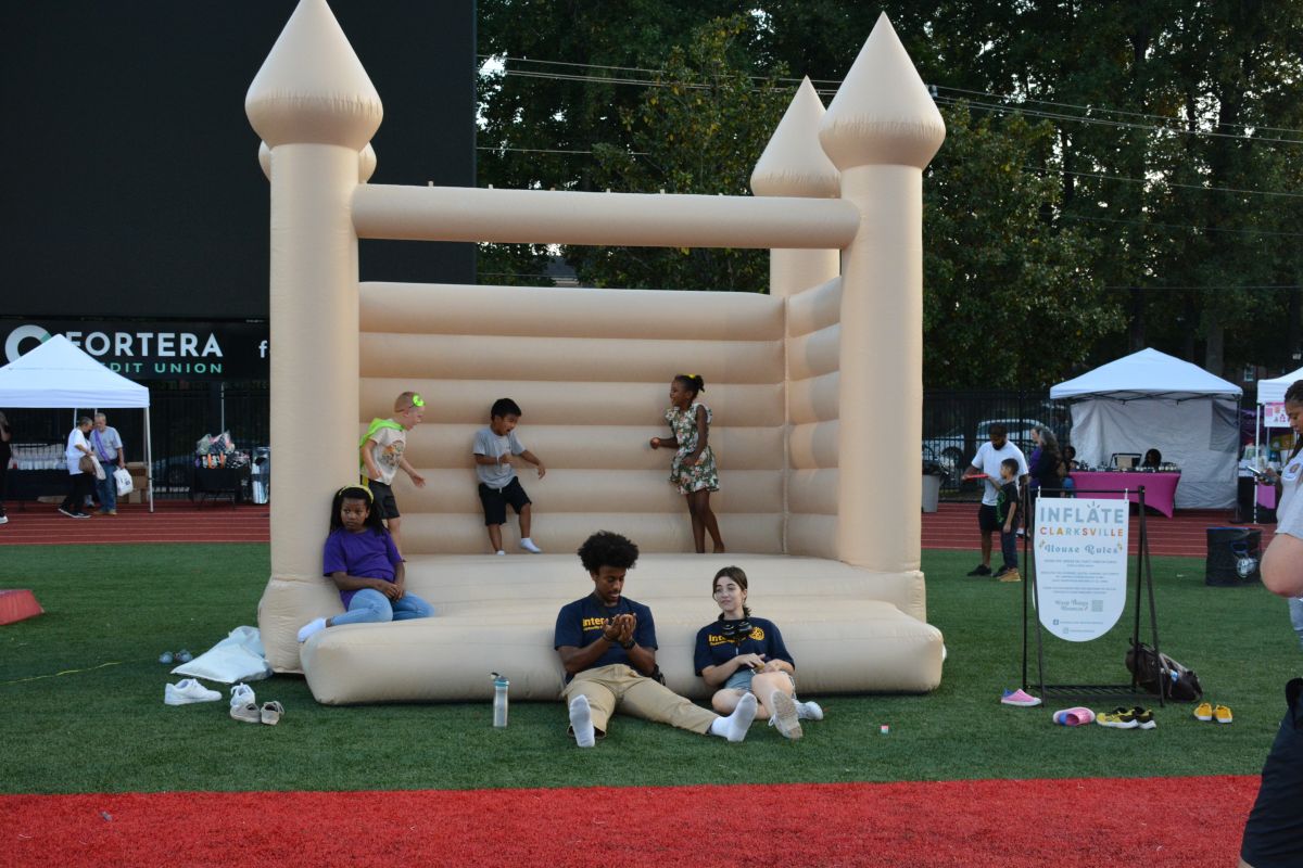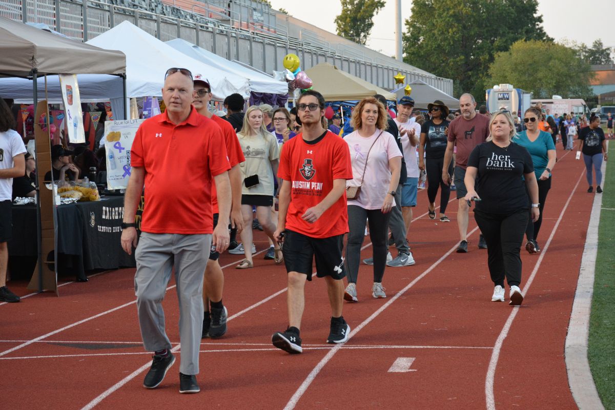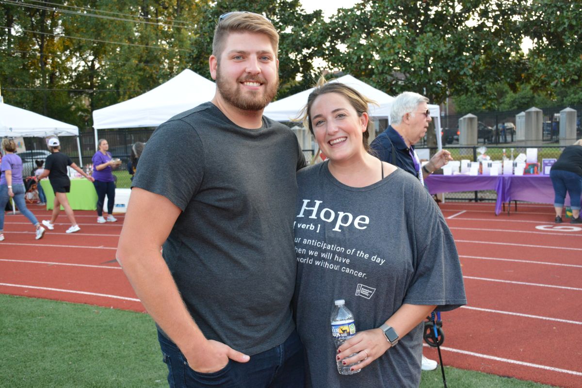 David Theiner & Alex Stewart join the community as it comes together to support the American Cancer Society at the Montgomery County Relay for Life fundraiser at APSU’s Fortera Stadium on Sep. 22, 2023. (Lee Erwin)