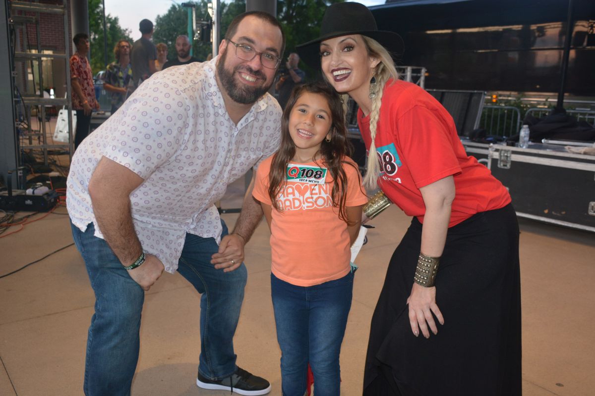 Q108’s Kyle King, Mia Golden, and Q108’s Tiffany Hill at Haven Madison’s concert at Downtown Commons on Jun.12, 2023. (Lee Erwin)