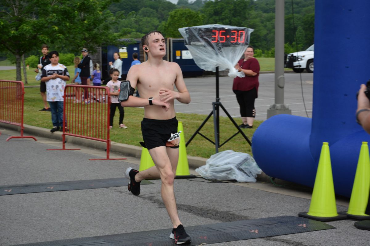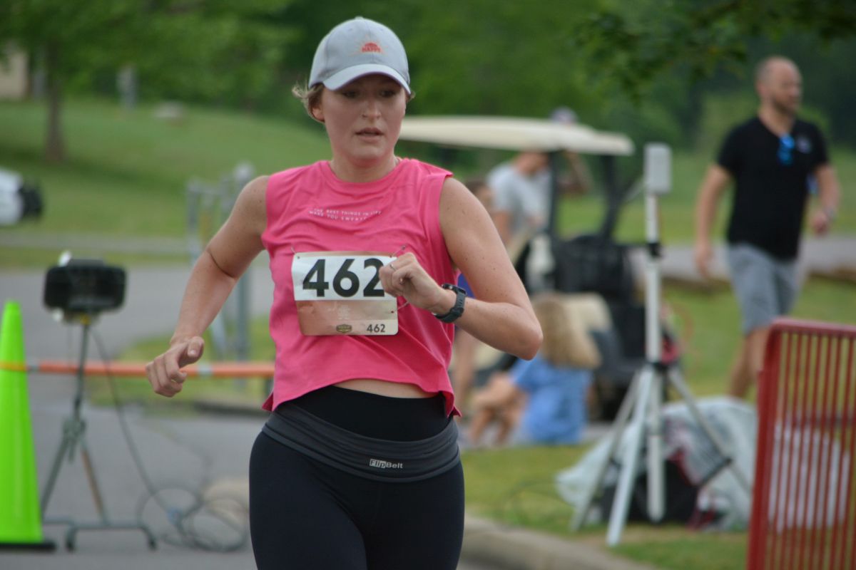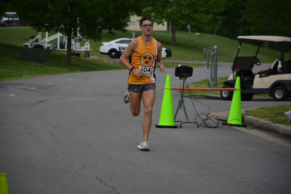 A runner in the Clarksville Parks & Recreation’s 45th Annual Queen City Road Race at Liberty Park on May 13, 2023. (Lee Erwin)
