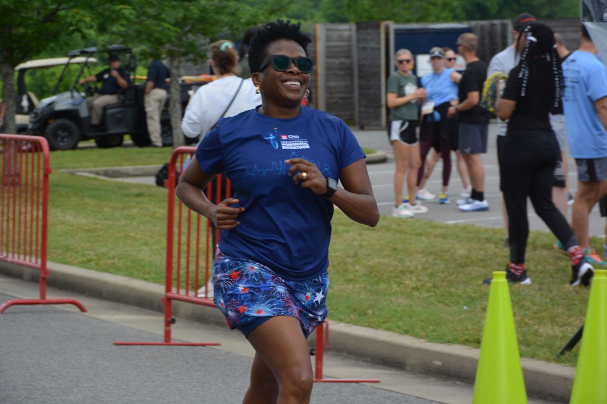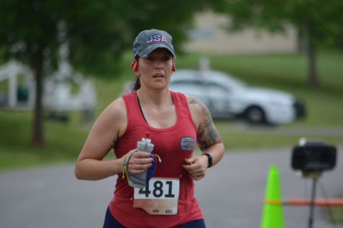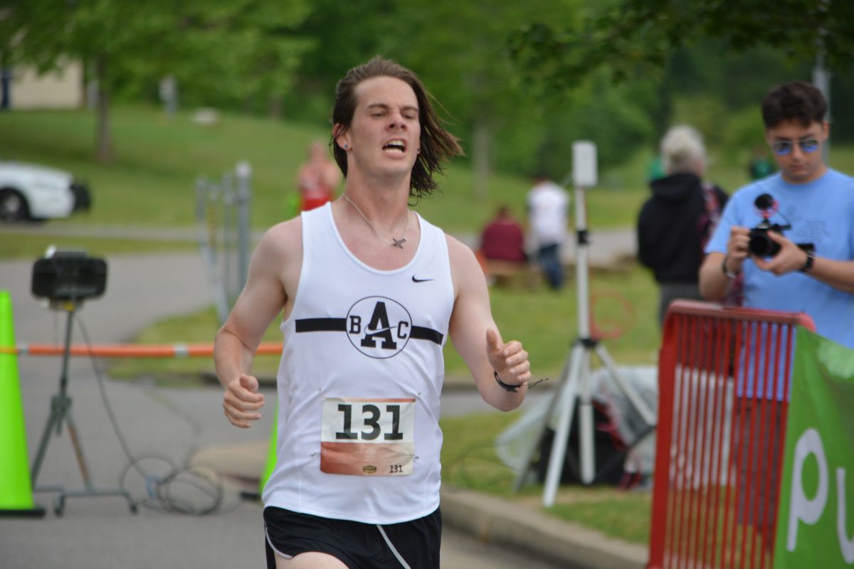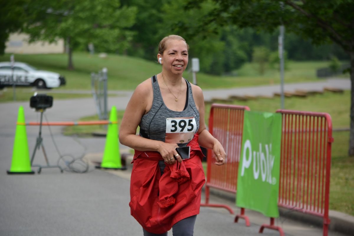 A runner in the Clarksville Parks & Recreation’s 45th Annual Queen City Road Race at Liberty Park on May 13, 2023. (Lee Erwin)