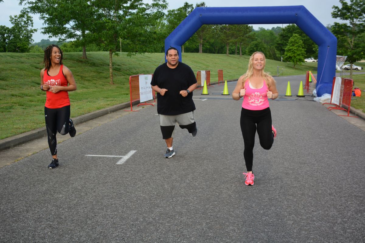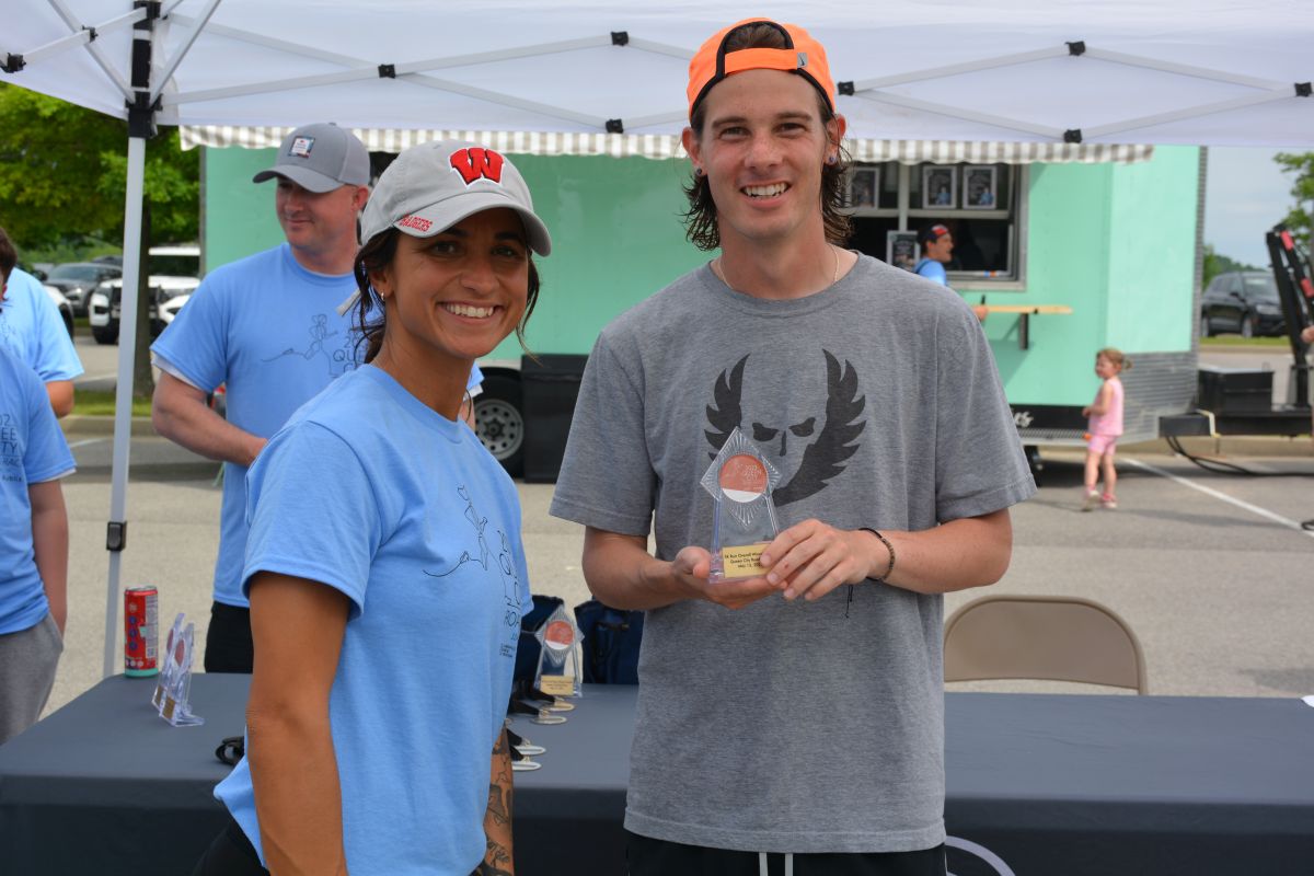 Overall winners in the 5K race and times:
