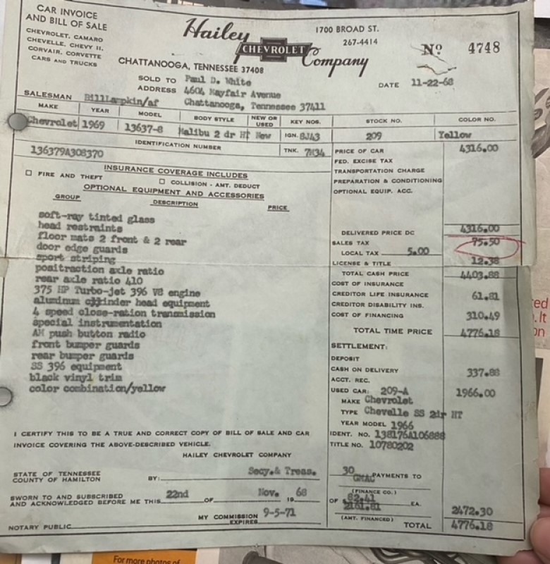 “It’s a top dog,” Nichols said. “So far, this is the only Malibu two-door sport coupe version, Daytona yellow, L78, L89 ever found.”