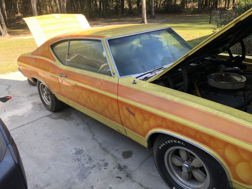 The car enthusiast claims there were only 400 Chevelles manufactured with the Regular Production Codes L78 and L89. Its alternating hues of light yellow and dark orange add to its rarity, placing the vehicle in a class of nearly 3,000 in the super-sport shade.