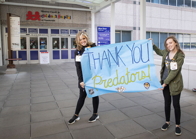 In addition to their gifts, the Predators have supported Children’s Hospital in many other ways, including players’ frequent visits with patients at the hospital; Flashes of Hope and Beads of Courage programs for patients; and during the 2020 season, each home game featured the Vanderbilt Health Champ of the Game, where fans were introduced to a patient from Children’s Hospital via the jumbotron.